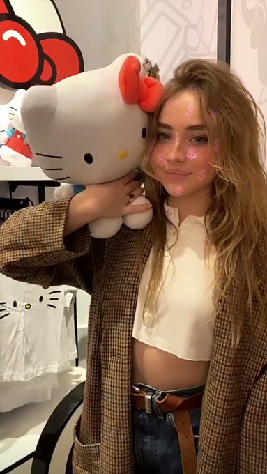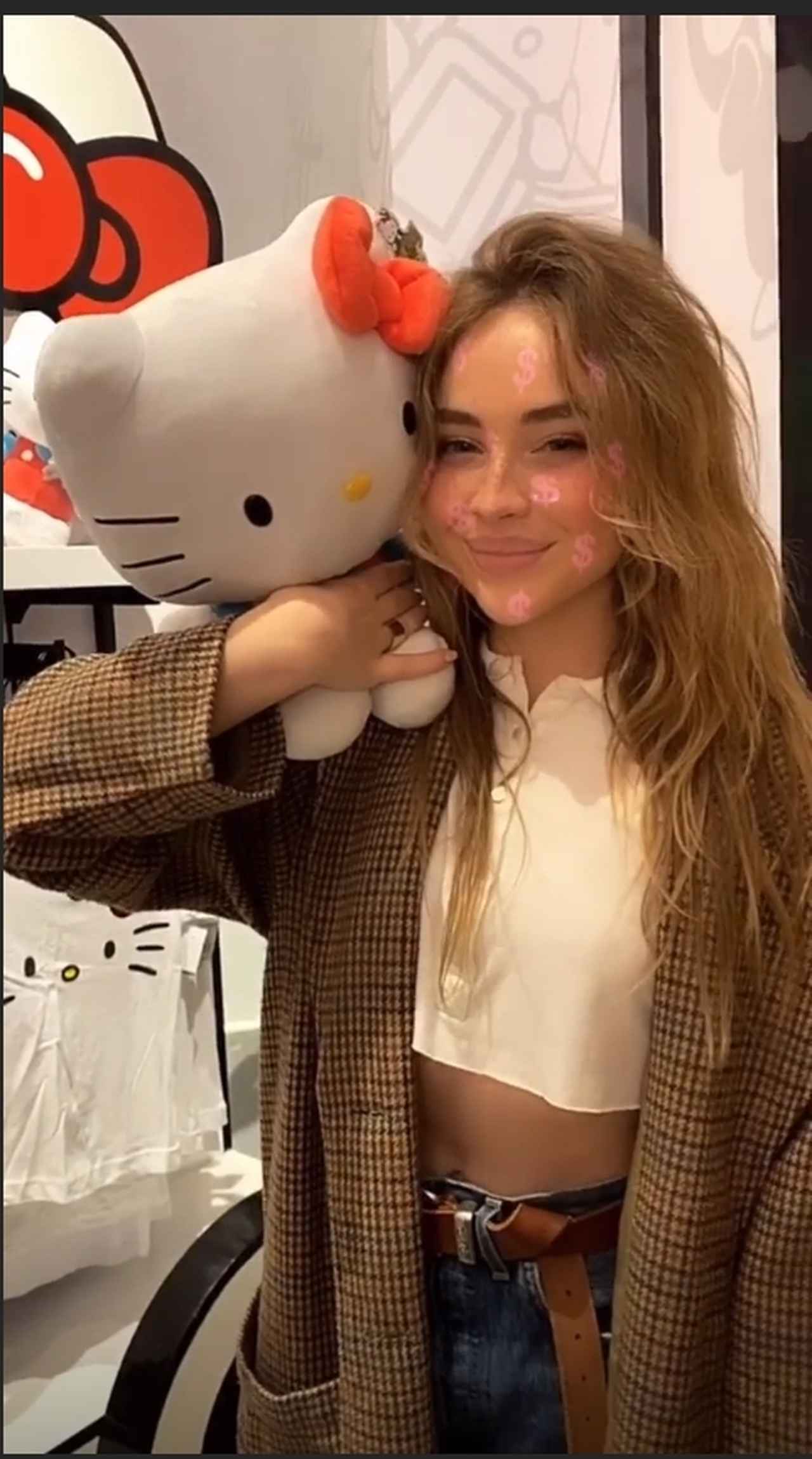 インスタグラムのストーリー機能と$マークが顔に映し出されるフィルターを使い、サブリナが投稿したビデオに写るのは、なんと海外でも人気を集める日本のキャラクター、ハローキティのぬいぐるみ。キティちゃんを肩に乗せ、片手でギュッと抱きしめ、サブリナは嬉しそうに笑顔を見せている。