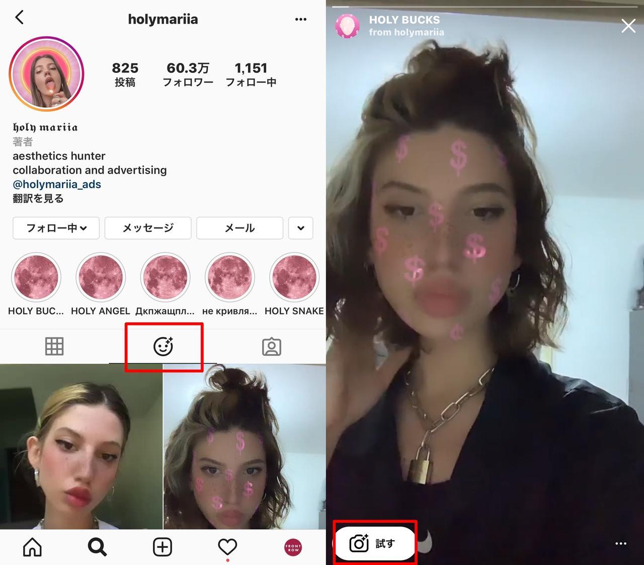 とにかく盛れると話題のフィルターは、ロシア出身の@holymariia というアカウントを運営するクリエイターの女性が作ったもの。