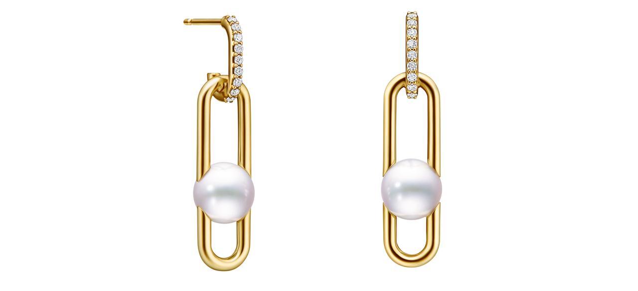 「fine links (ファイン リンク)」イヤリング [18K イエローゴールド、あこや真珠、ダイヤモンド] ¥340,000