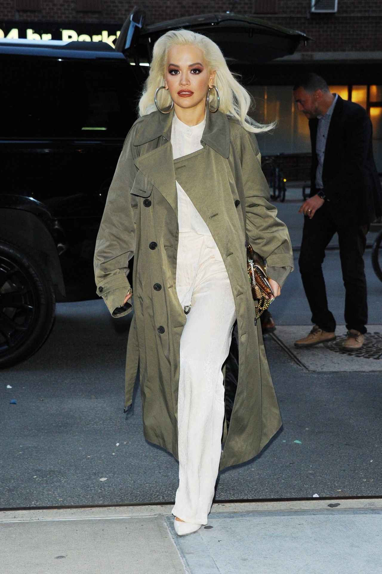 今年の夏の来日公演でも話題になった人気シンガーのリタ・オラは、カーキのトレンチコートを愛用。光沢感のある素材のトレンチは、カジュアルにもキレイめにもマッチする万能トレンチ。