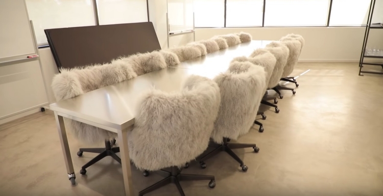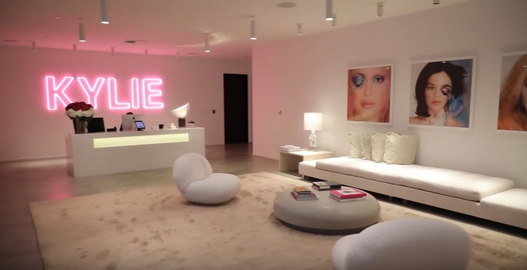 カイリーの大好きなピンクをアクセントにしたオフィスには、巨大なブランドロゴのネオンサインやカイリー関連の動画が一日中流れ続ける特大スクリーンが出迎える会社ロビーに始まり、長時間座っても疲れにくいフェイクファー張りの椅子が置かれたミーティングルームや社員たちが自由に過ごせるカフェテリア、スムージーなども作れるキッチンに加え、カーダシアン/ジェンナー家の姉妹たちも利用することもあるという写真撮影スタジオやメイクアップルーム、広大な衣裳部屋にシャワールーム、動画撮影専用のスタジオや映像編集室も完備。