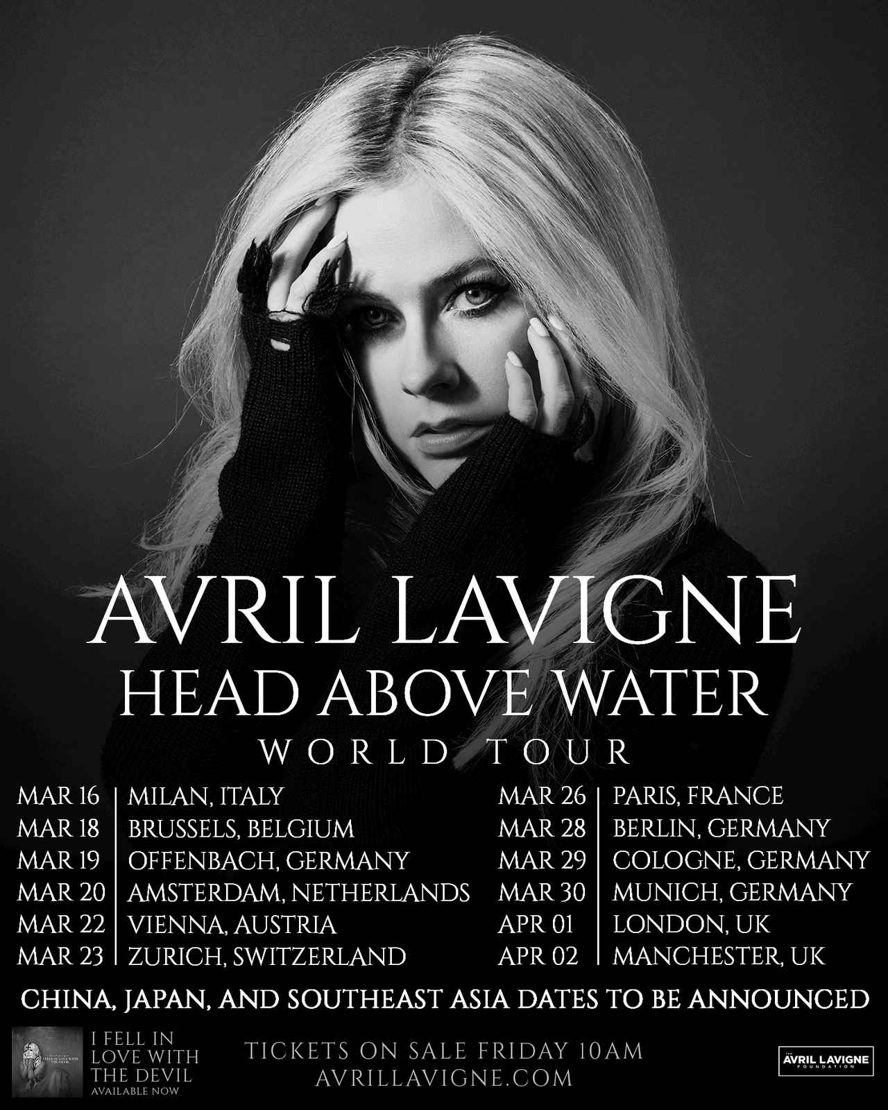 2020年5月に幕開けるジャパン・ツアー「HEAD ABOVE WATER WORLD TOUR 2020 JAPAN」は、2019年9月に米シアトルで幕開けたばかりのワールド・ツアーの日本公演。北米に続き、来年は日本の前にヨーロッパもまわる同ツアーでは、全チケットの収益の一部が慈善団体アヴリル・ラヴィーン・ファンデーションを通して、ライム病をはじめとした難病と闘う活動に寄付される。