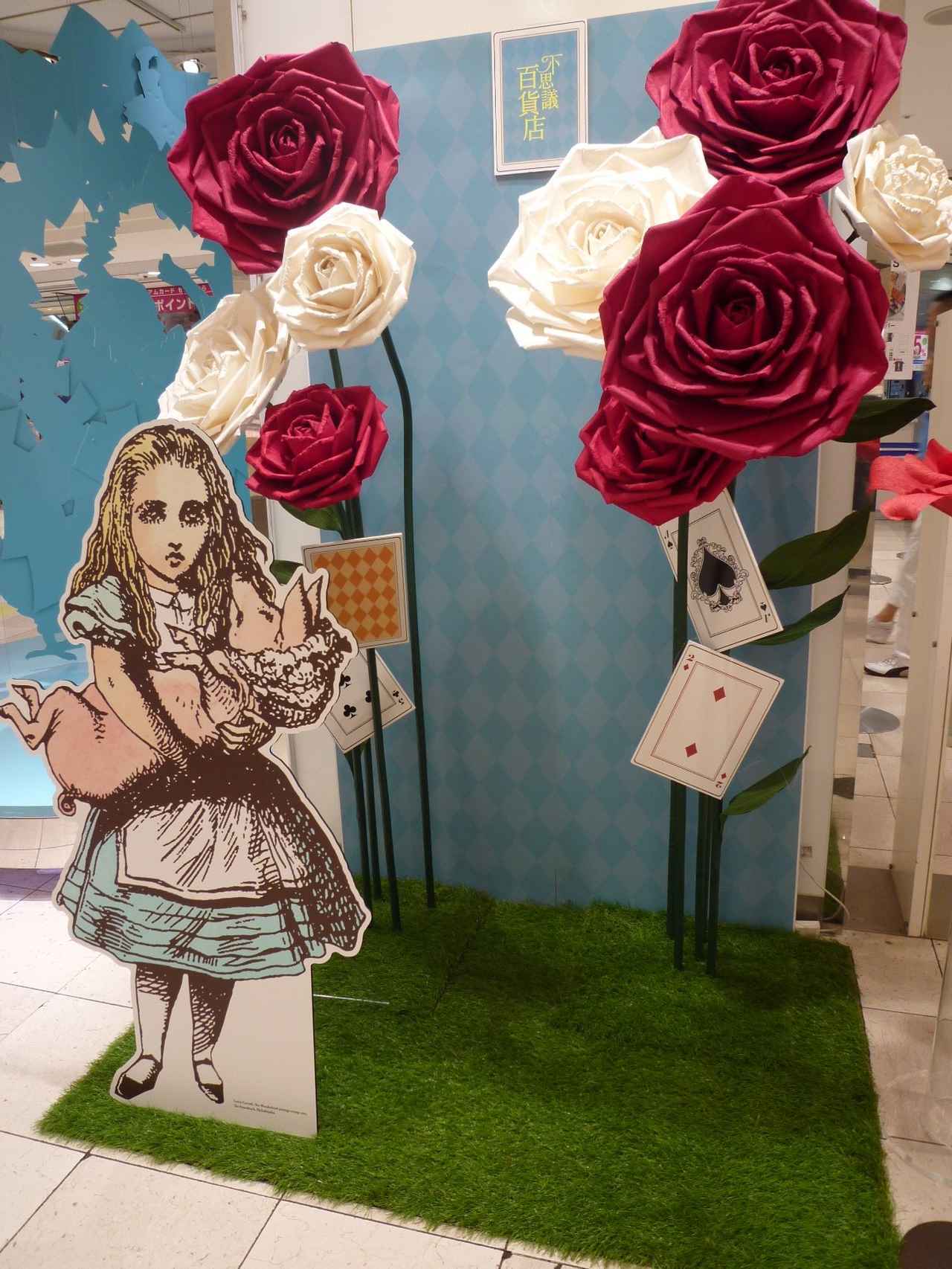 地下2階の正面入口付近には、アリスと一緒に、『不思議の国のアリス』で女王の庭にあるバラを彷彿とさせる赤、白のバラやトランプカードが飾られたフォトスポットも登場。こちらは10月31日まで。