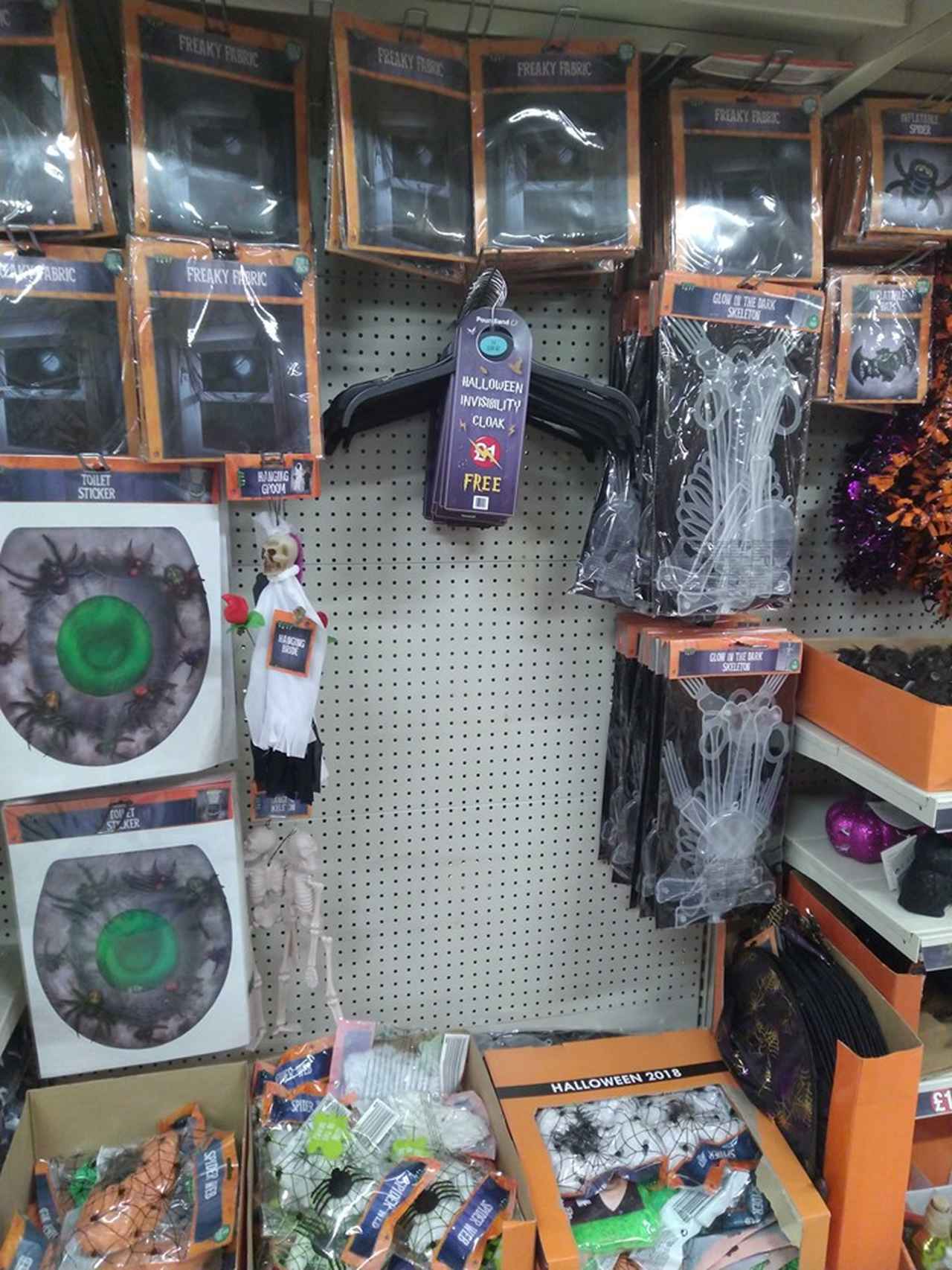 ハロウィンの季節に合わせて、店舗には魔法やゴーストなどのハロウィングッズが揃うPoundlandでは、驚くことにこの透明マントがタダで売られている。店舗限定で販売されている、お金を払わずしてゲットできる透明マントとは…。