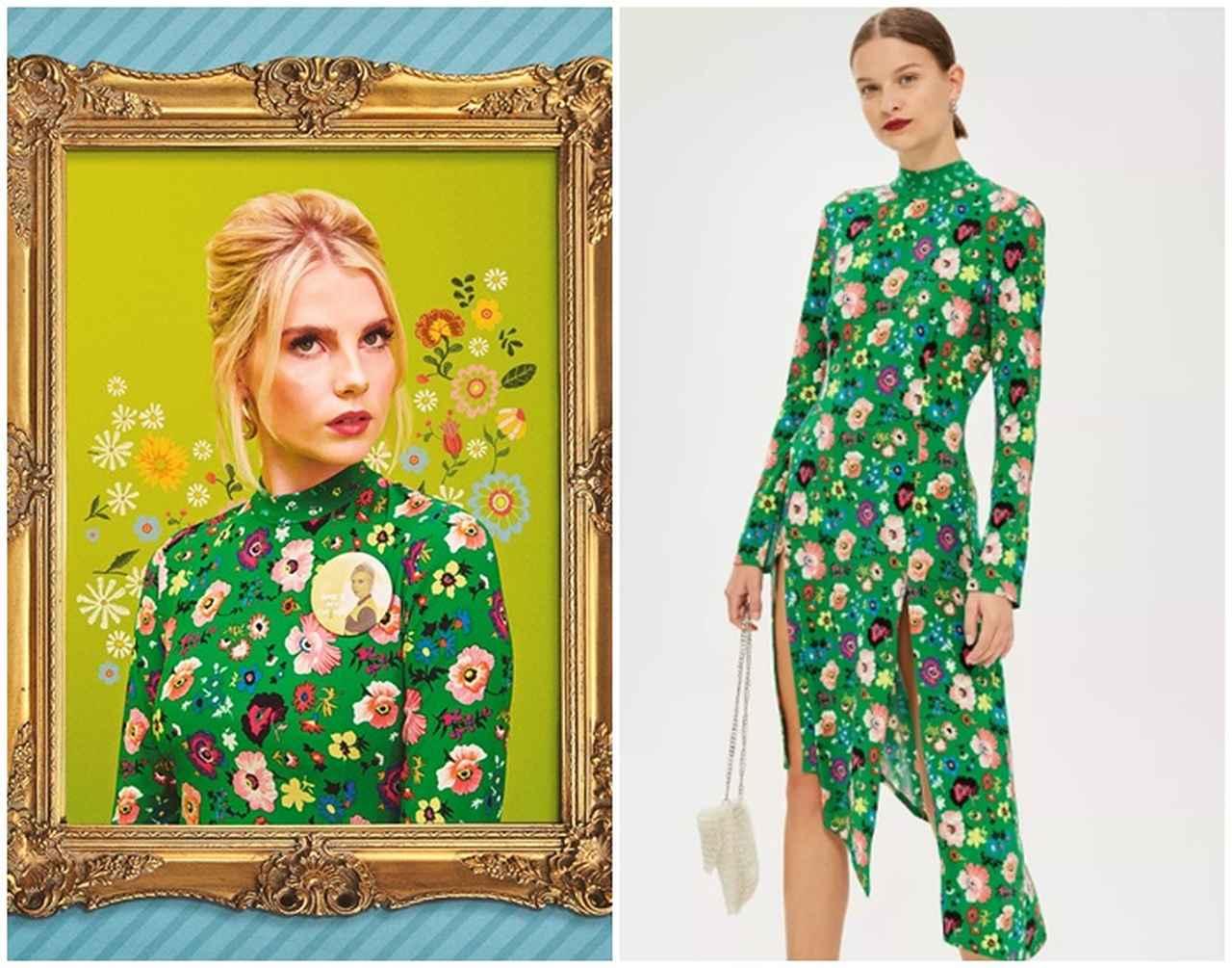 ポスター写真で着用したグリーンの花柄ドレスは、トップショップ(Top Shop)のもの。このドレスはドラマの影響と、セール価格で定価36ポンド(約5,000円)から7ポンド(約980円)に値下がりしたことも重なり、オンラインストアでは全サイズが完売。イギリスの店舗でも品薄状態が続いている。