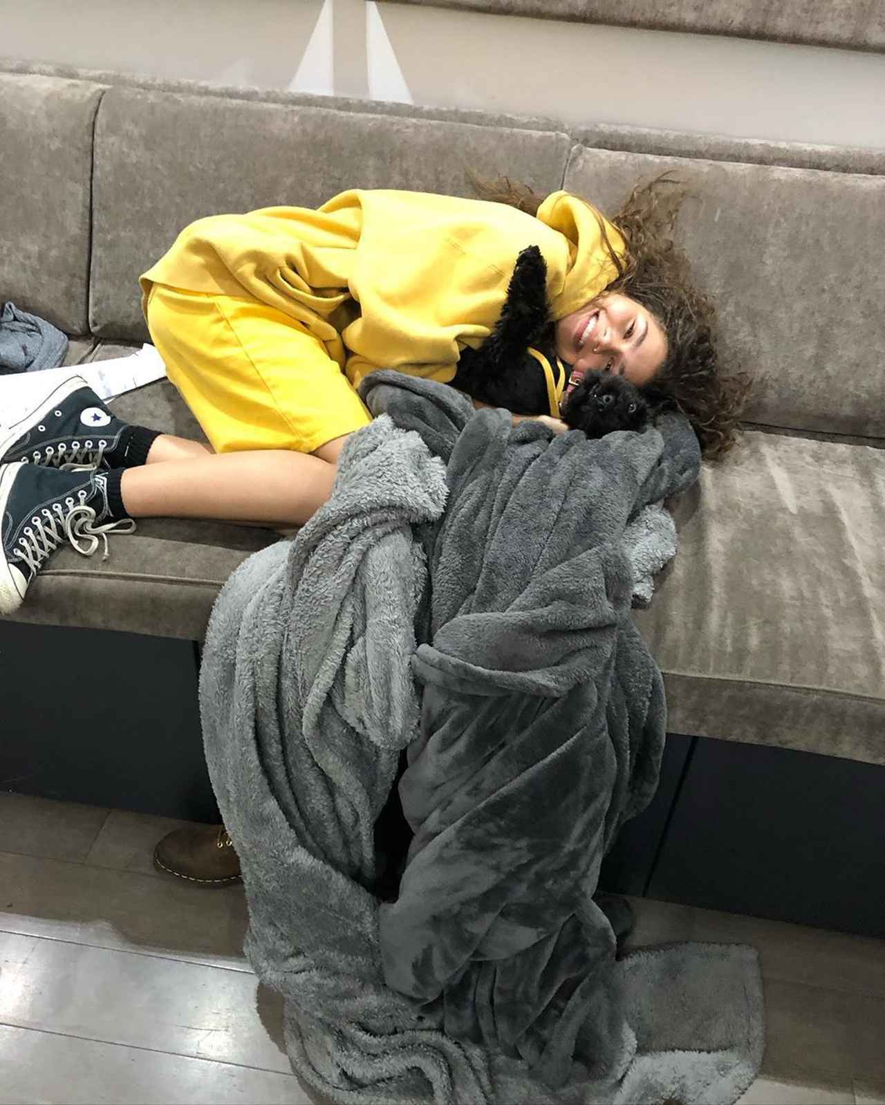 今回投稿された写真に写るのは、ゼンデイヤと愛犬。上下イエローのスウェットにコンバースを合わせたゼンデイヤが、愛犬と共にソファーに横たわり、満面の笑みを見せている。