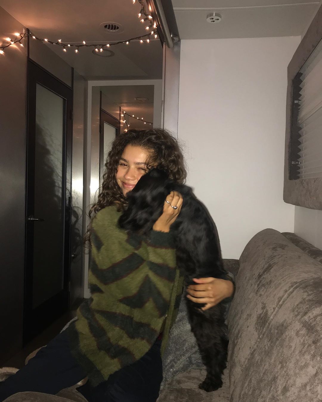 ノーメイクで愛犬に寄り添う微笑ましい写真や、なにか愛犬に向かって語りかけているように見える写真など、オフィシャルな写真を多く投稿するゼンデイヤにしてはレアな写真の数々が登場。