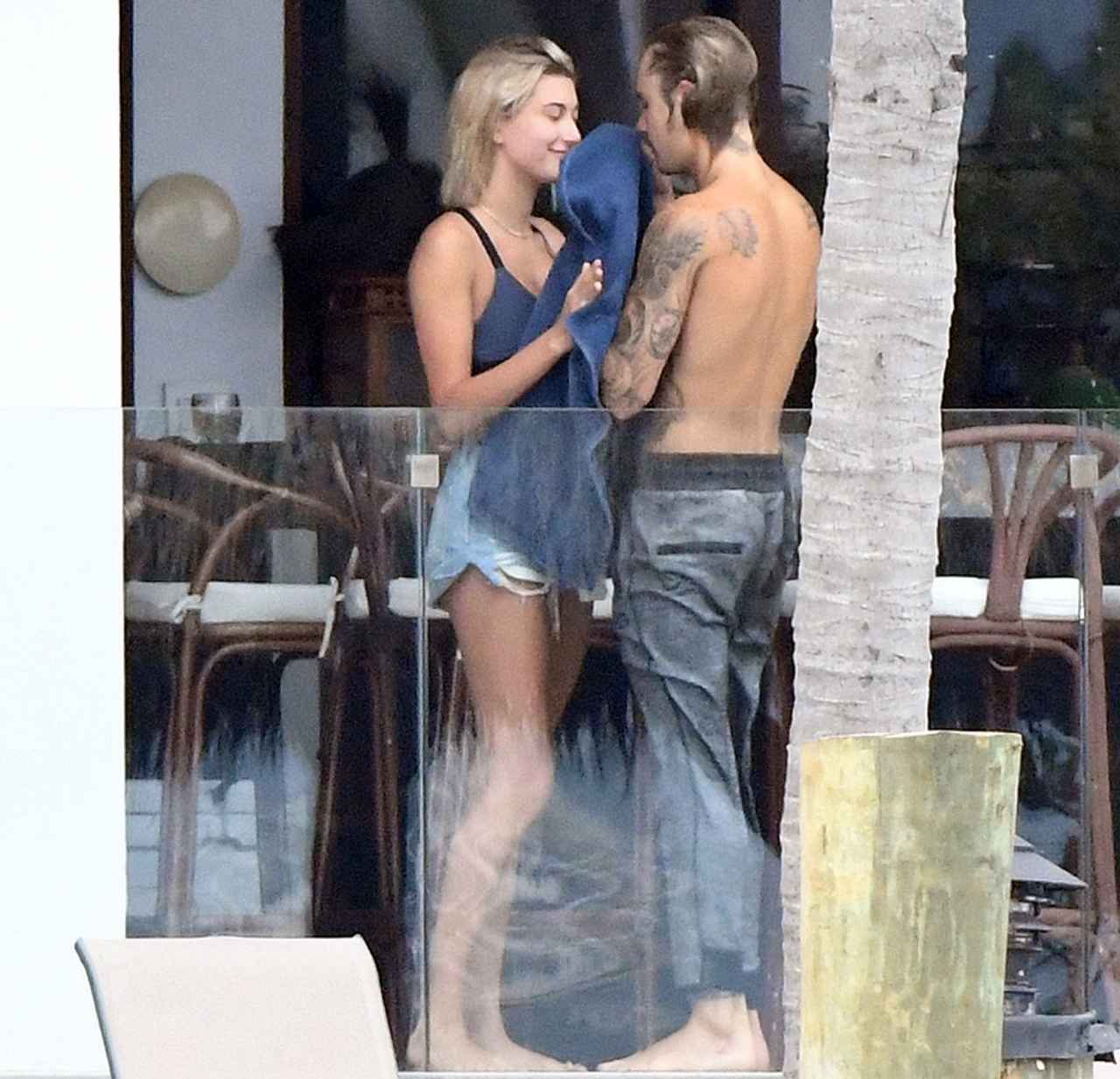 2018年6月、マイアミの滞在先ホテルで仲睦まじい姿が目撃されたジャスティンとヘイリー。2人はこの1カ月後に婚約し、9月にニューヨークの裁判所で簡易的な結婚式を挙げて法的な夫婦となった。