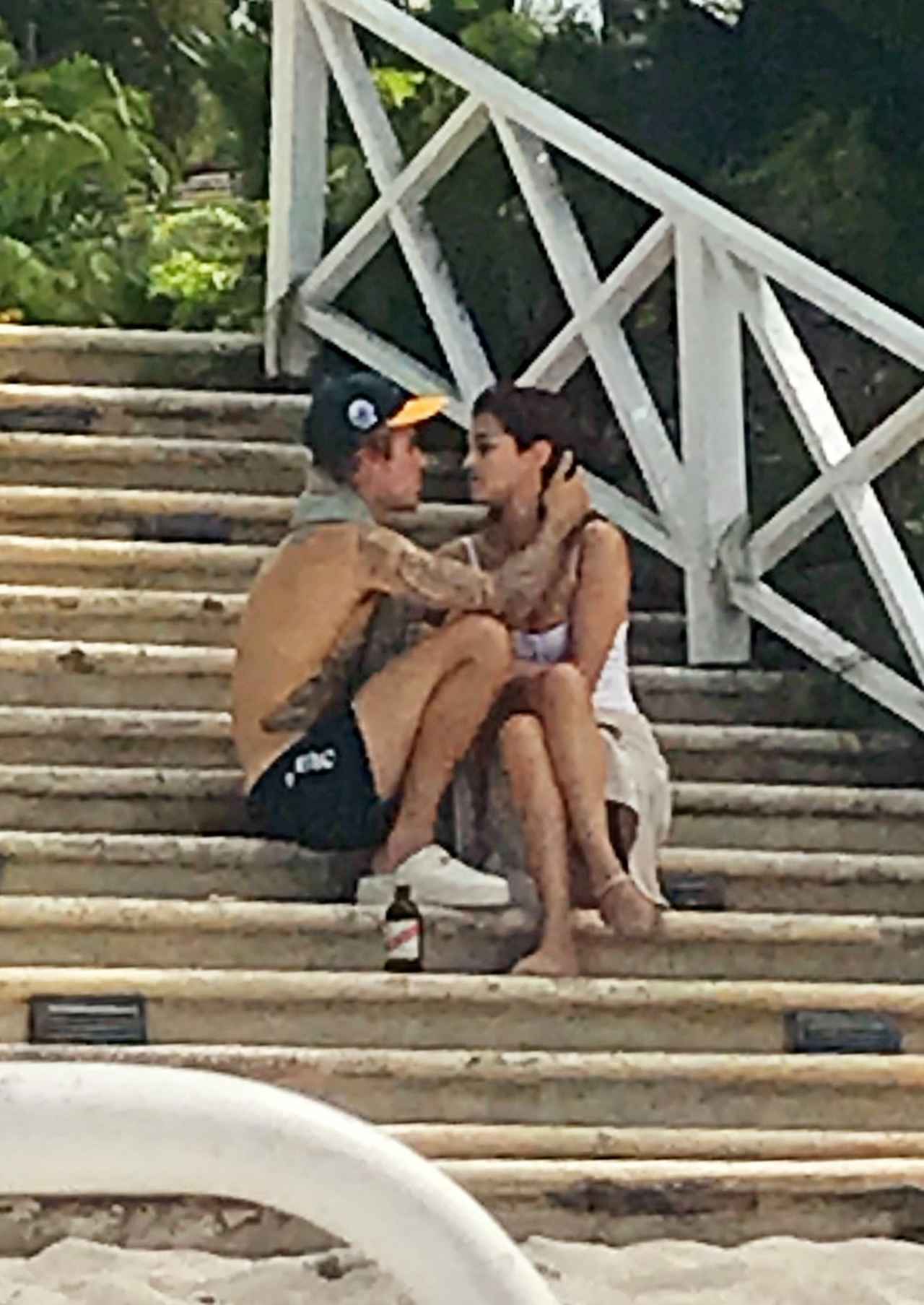 2018年2月、ジャスティンの父の結婚式に出席するためジャマイカを訪れた際のジャスティンとセレーナ。2人はそれから2カ月ほどで破局。 右:2018年6月、マイアミの滞在先ホテルで仲睦まじい姿が目撃されたジャスティンとヘイリー。