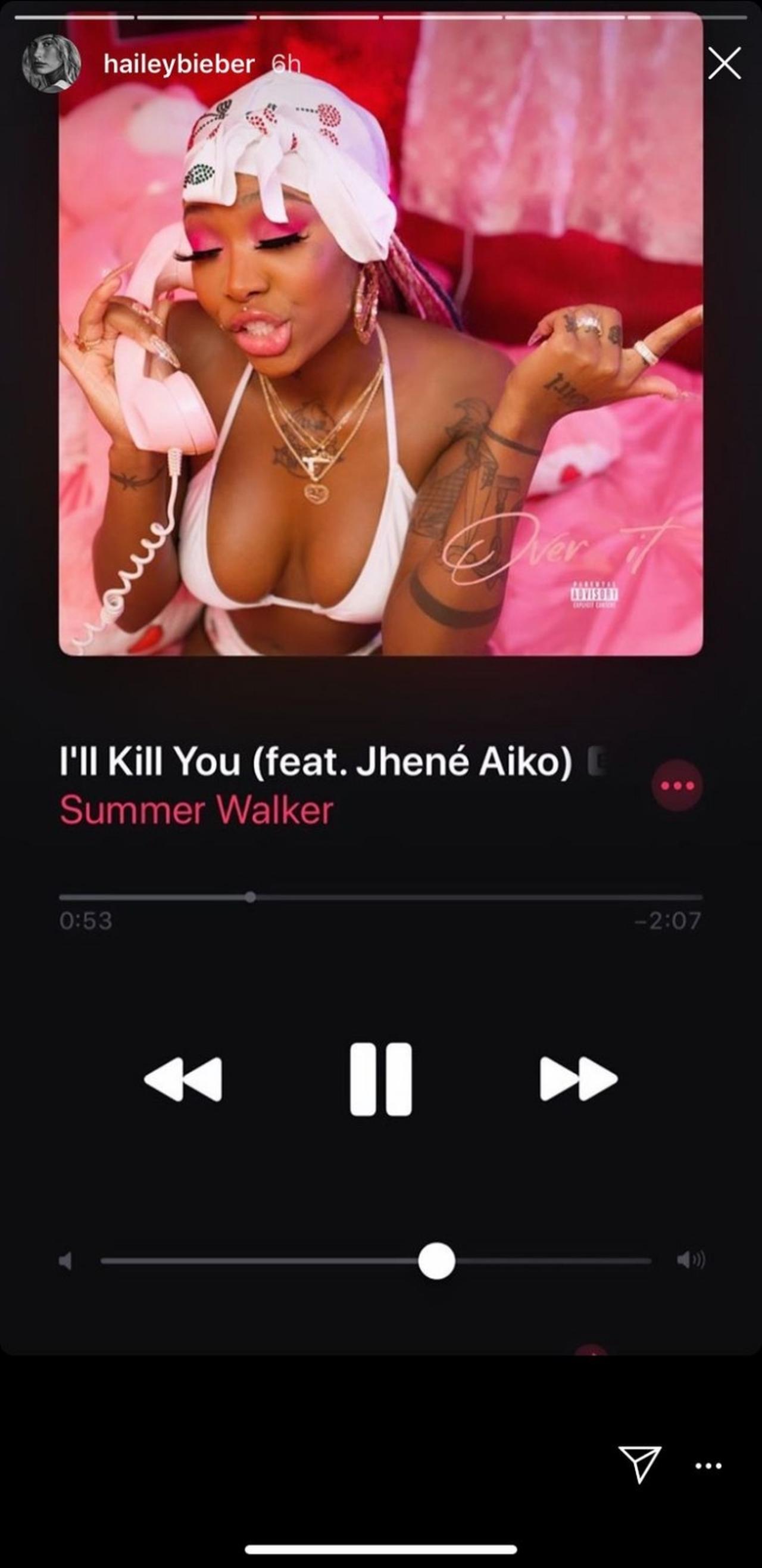セレーナの新曲公開から数分後、ヘイリーは、ある別の楽曲を聴いている最中だということを示すスクリーンショットをインスタグラムストーリーに投稿。