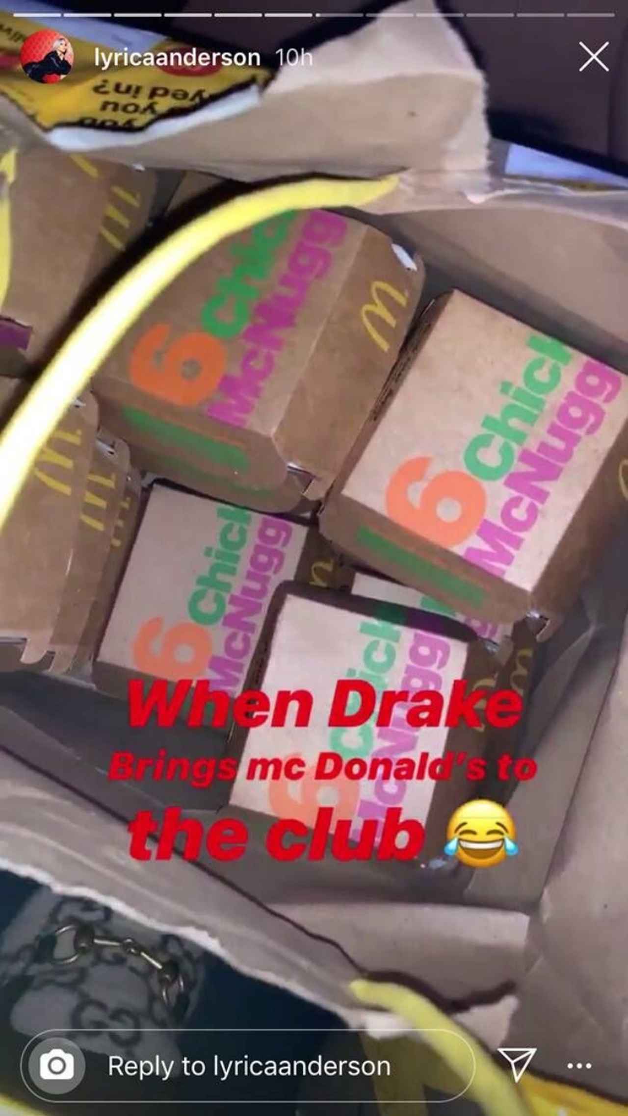 ドレイクは、なんと、ゲストたちのために近所のマクドナルドから大量のハンバーガーやフライドポテトなどをオーダー。