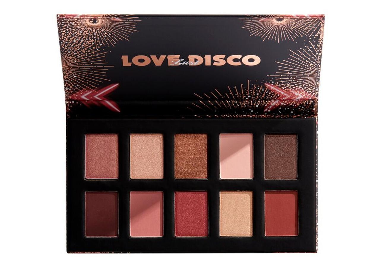 全10色のアイシャドウがセットになった「ラブ ラスト ディスコ シャドウパレット」は、シマー、メタリック、マットの3つの質感がセットになり、組み合わせ次第でいろんなルックが楽しめるアイシャドウパレット。