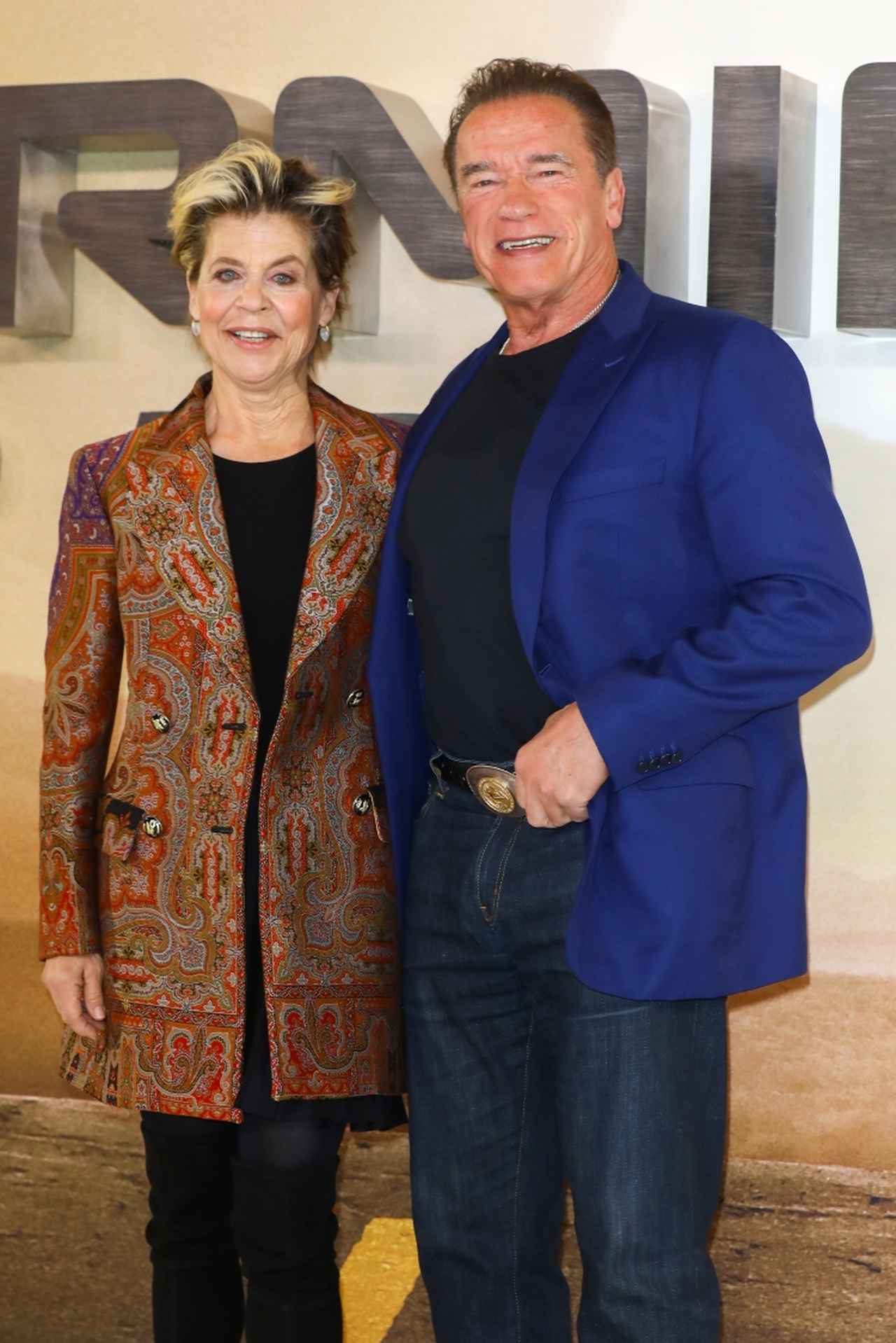 10月17日にイギリス・ロンドンで行なわれた『ターミネーター:ニュー・フェイト』のフォトコールに共演者のリンダ・ハミルトンとともに登場し、笑顔を見せたアーノルド。