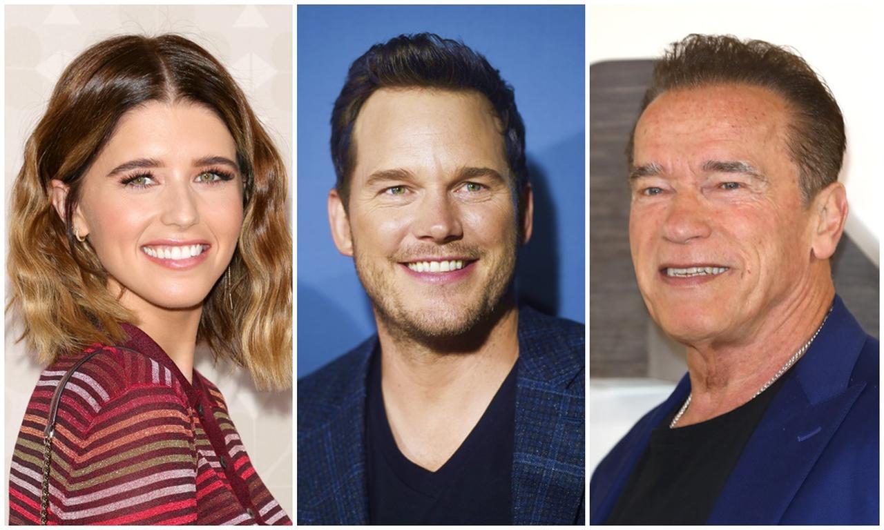 左からキャサリン・シュワルツェネッガー、クリス・プラット、アーノルド・シュワルツェネッガー。