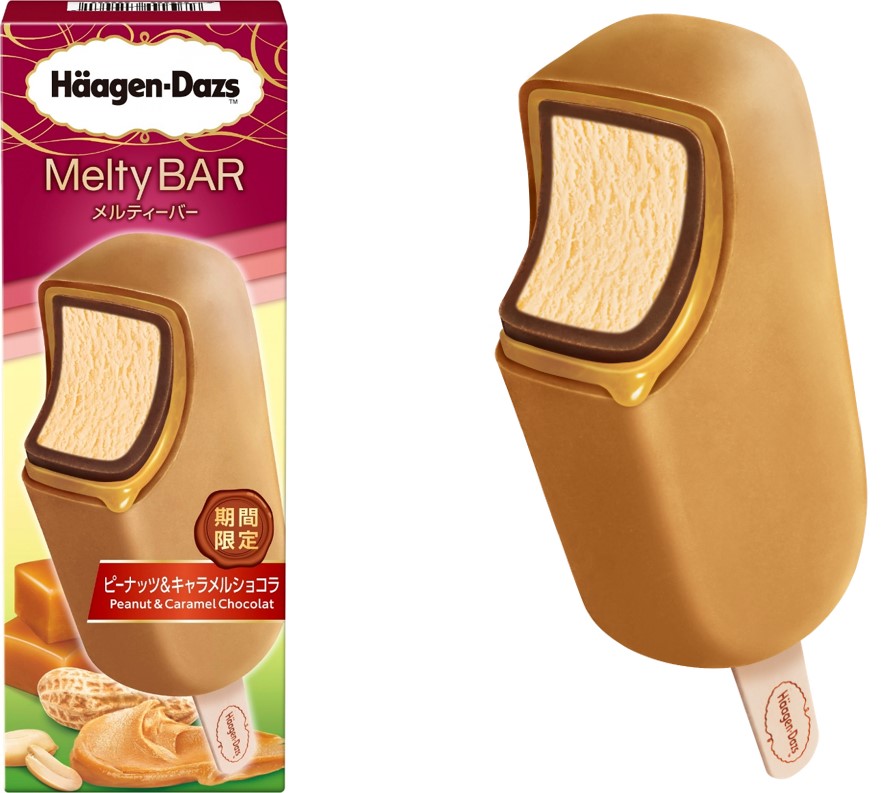 ハーゲンダッツ メルティーバーは、2層のコーティングの間からソースがとろりとあふれ出す、新感覚のアイスクリームバーシリーズ。