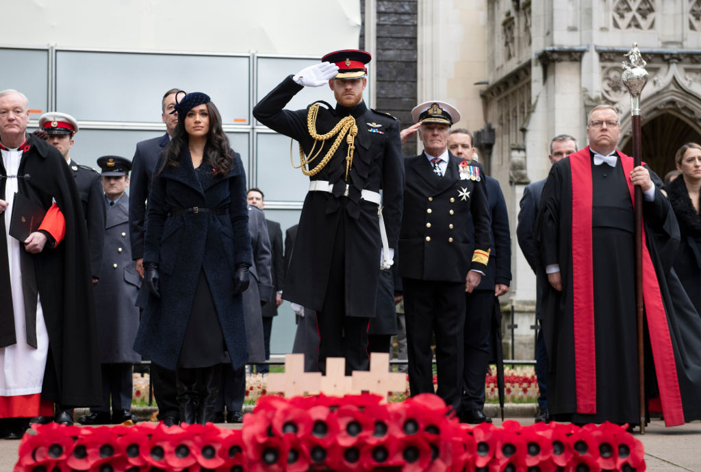 イギリス王室のメーガン妃、11月11日のリメンブランス・デー(※)に先がけてロンドン市内にあるウェストミンスター寺院で行なわれた戦没者追悼セレモニー「フィールド・オブ・リメンブランス」に夫のヘンリー王子とともに参加。