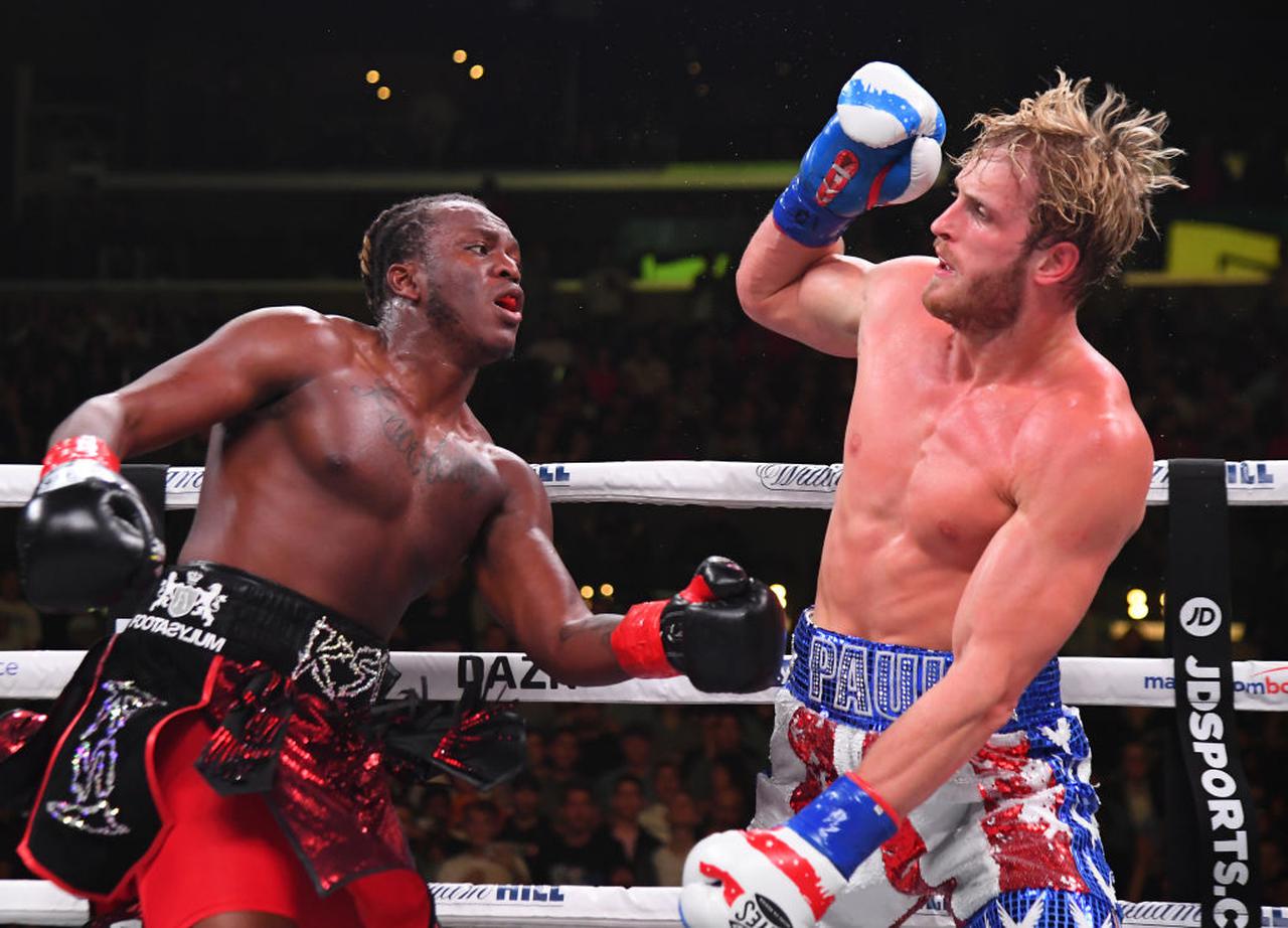 試合中のKSI(左)とローガン・ポール(右)。結果はKSIが勝利。