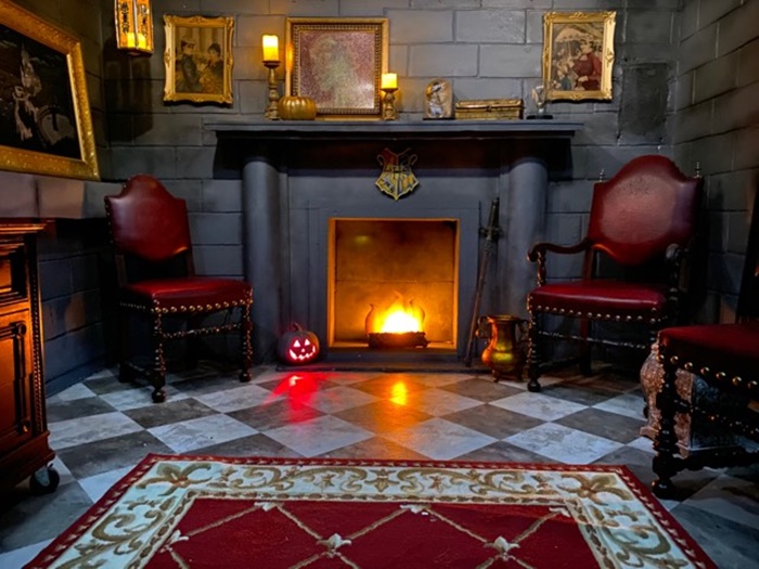そして『ハリー・ポッター』の世界観をより盛り上げるために、発泡スチロールで暖炉の模型を作り壁に設置。レンガの壁には全身鏡を埋め込み、魔法的な空間を演出したという。