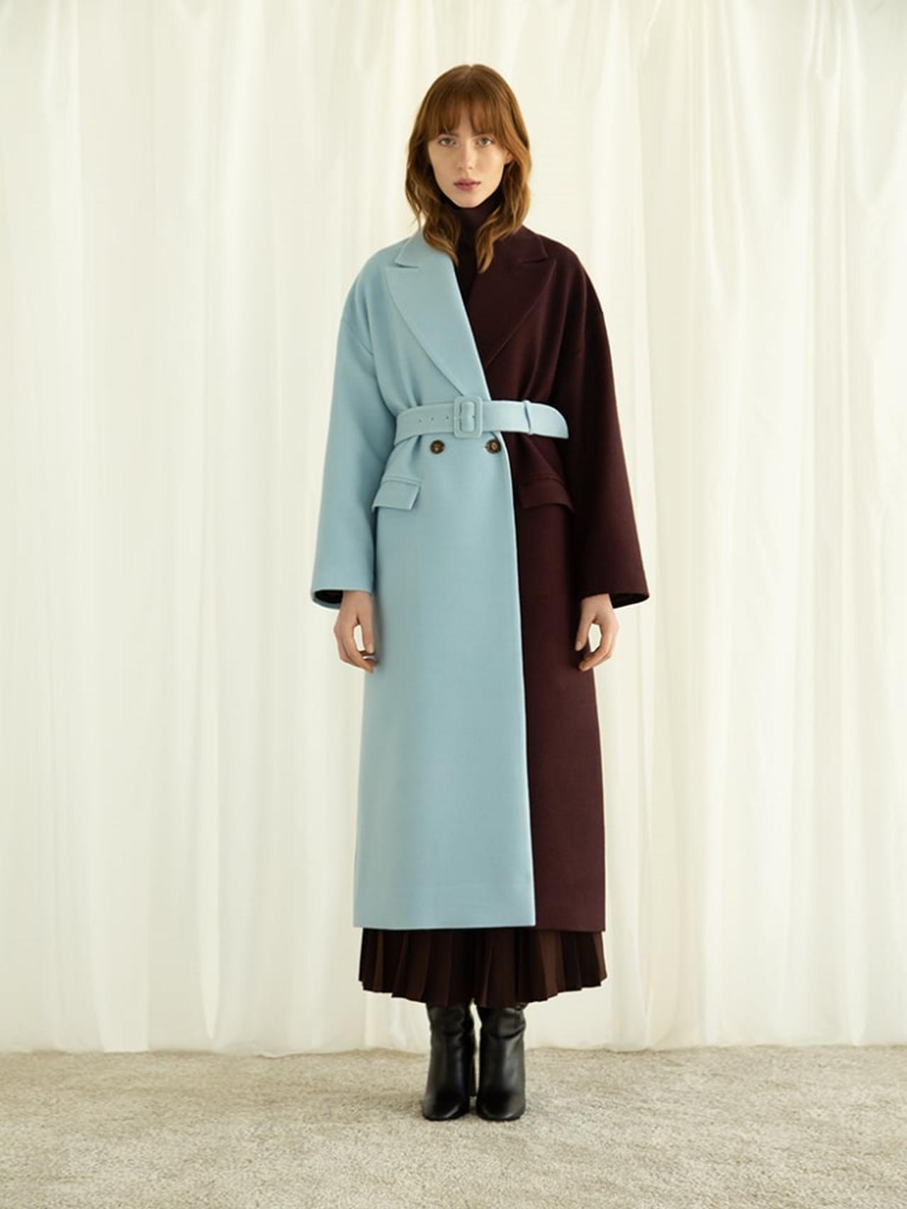 カラーブロッキングは今季のアウタートレンドの1つでもあり、海外のブランドからは、さまざまなデザインのカラーブロッキングコートが発売されている。
