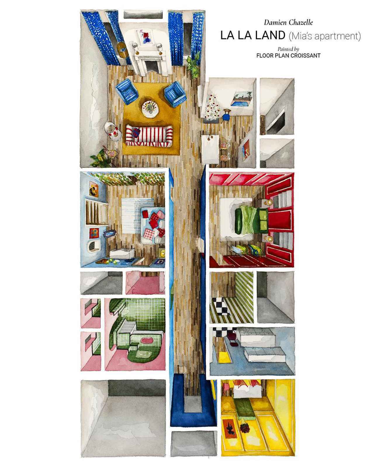 映画『ラ・ラ・ランド』からは、俳優エマ・ストーン演じたミアが友人3人とルームシェアをした家が登場。劇中でミアが友人とダンスを繰り広げる場所が、細かく描かれている。