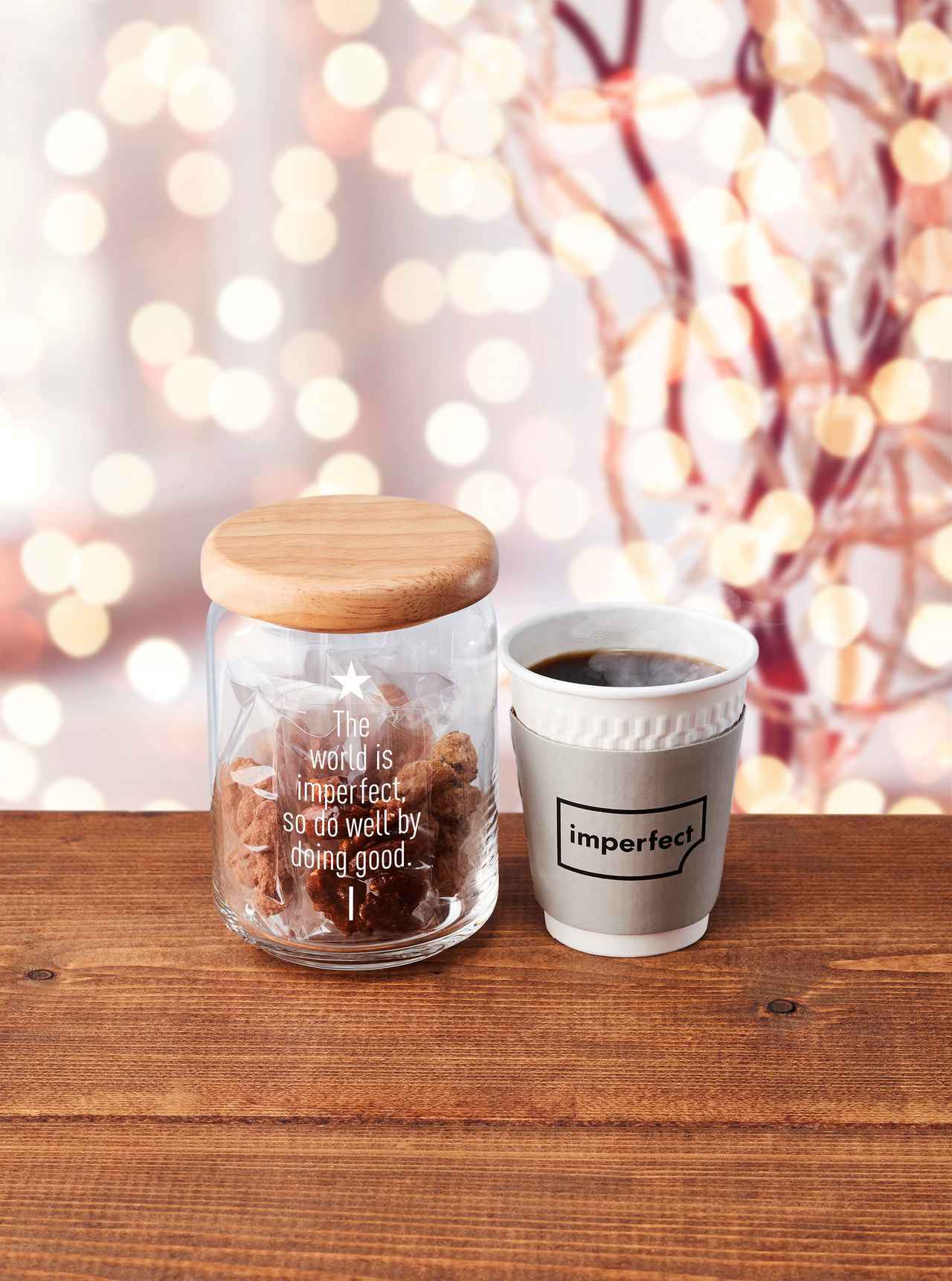 imperfect表参道の2019 ホリデーシーズンは、 「ホリデーアソート」と季節限定のコーヒー「タンザニア エーデルワイス」を展開。「ホリデーアソート」のナッツと「タンザニア エーデルワイス」のコーヒー豆は、社会的・環境的価値の高い取り組みを通じて生産された素材を使用している。