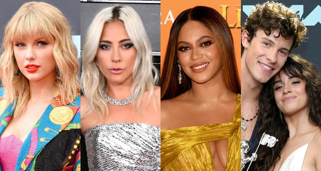 左から:テイラー・スウィフト、レディー・ガガ、ビヨンセ、ショーン・メンデス、カミラ・カベロ。