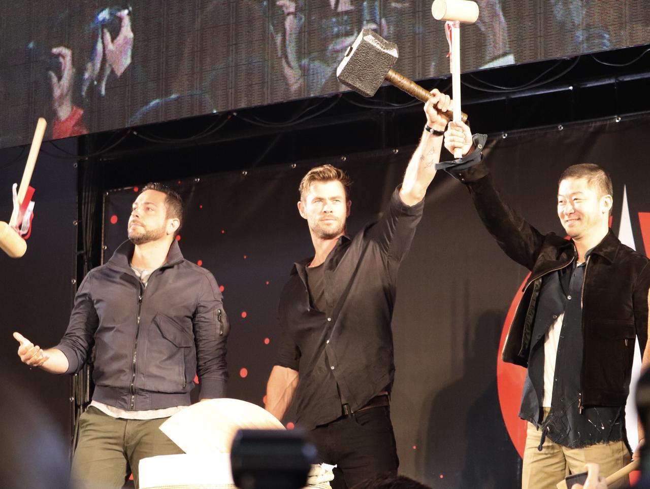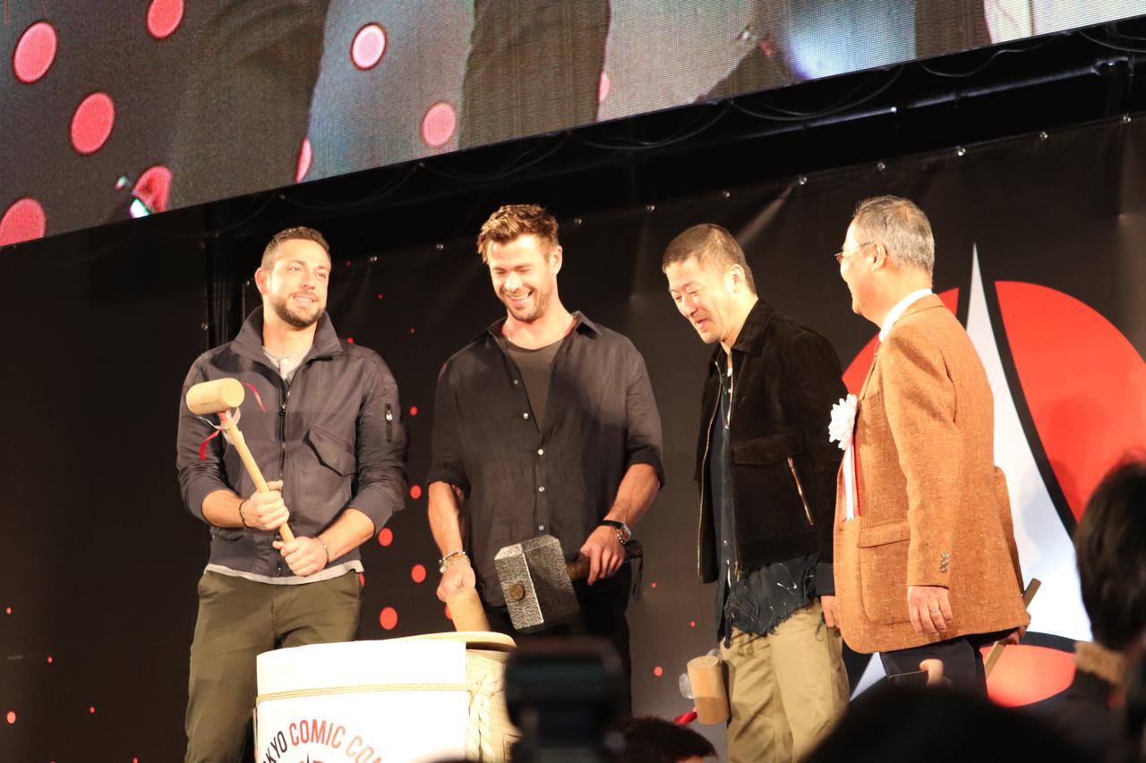 今年の東京コミコンのアンバサダーには、日本の人気俳優である浅野忠信が選ばれ、ステージに登場。クリス、ザッカリー、そして浅野忠信といえば、MCU映画『マイティ・そー』シリーズで共演したことがあるため、久しぶりに見られた3ショットに観客は大興奮。