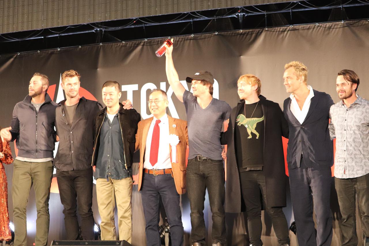 オープニングイベントでは、今回の来日ゲストである映画『シャザム!』のザッカリー・リーヴァイ、映画『マイティ・ソー』シリーズのクリス・ヘムズワース、ドラマ『ヴァンパイア・ダイアリーズ』のイアン・サマーホルダー、映画『ハリー・ポッター』シリーズのルパート・グリント、映画『ファンタスティック・ビースト』シリーズのジュード・ロウ、そして映画『スター・ウォーズ』シリーズのダニエル・ローガンがステージに登壇した。