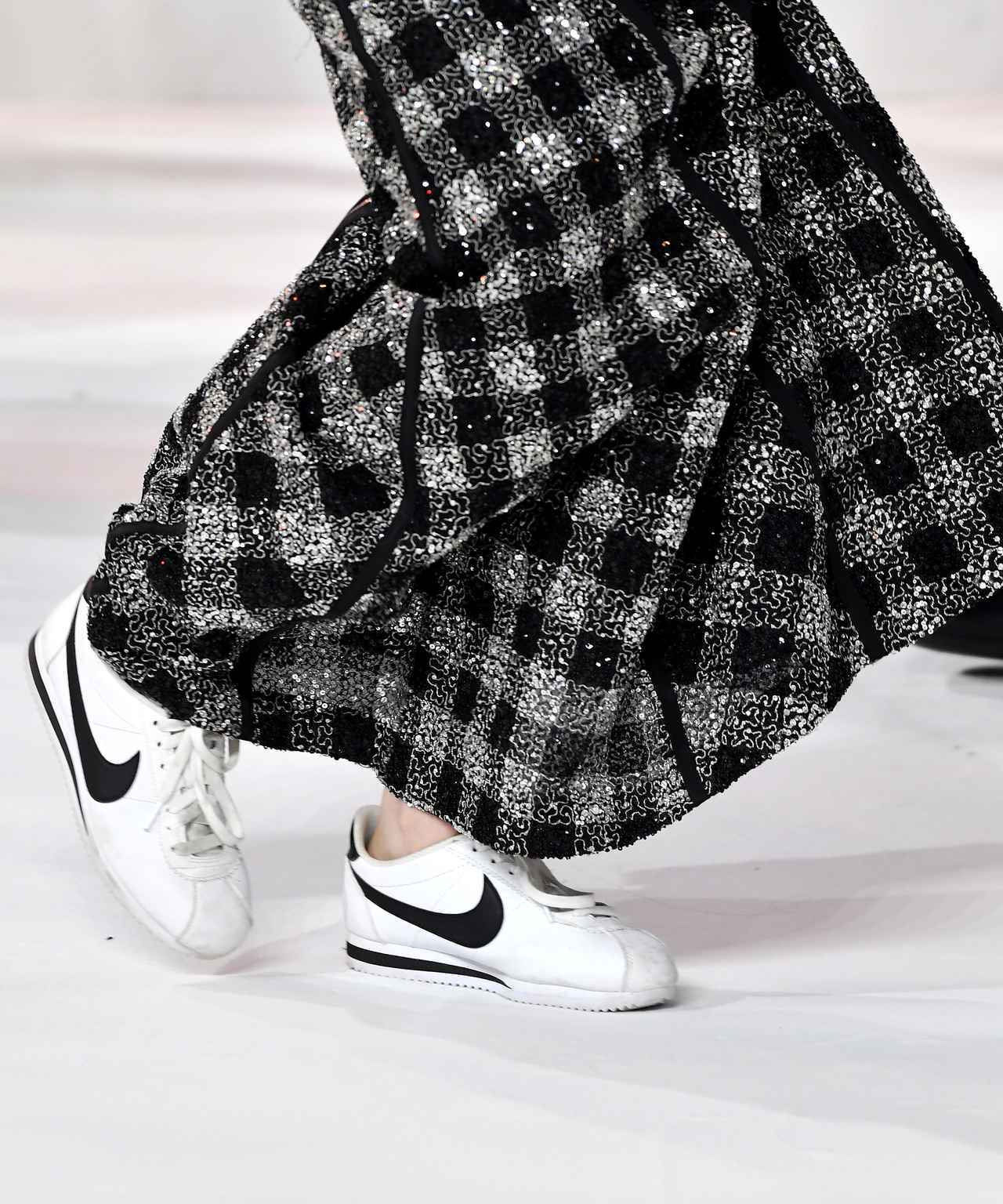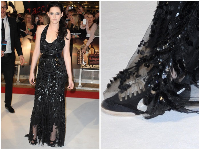 スタイリストの元へ向かったクリステンは次の瞬間、なんと履いていたヒールを脱ぎ、ナイキ(Nike)のコルテッツという日本でも1万1,000円で購入出来るスニーカーに履き替え。