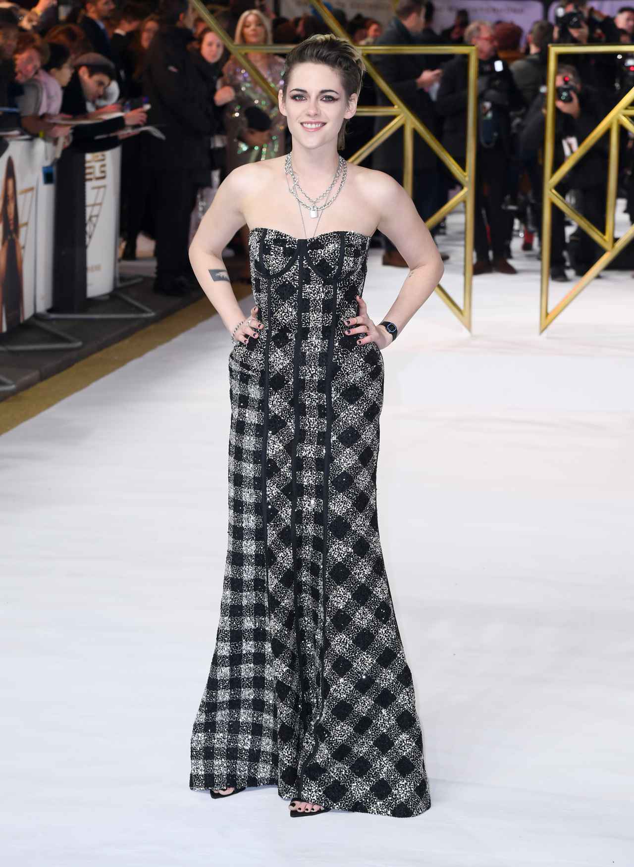 そんな『チャーリーズ・エンジェル』がイギリスで11月29日に公開を控え、ロンドンで行なわれたプレミアにキャストたちが参加。クリステンはトム・ブラウン(Thom Browne)のロングドレスを着用してファンの前に姿を見せた。