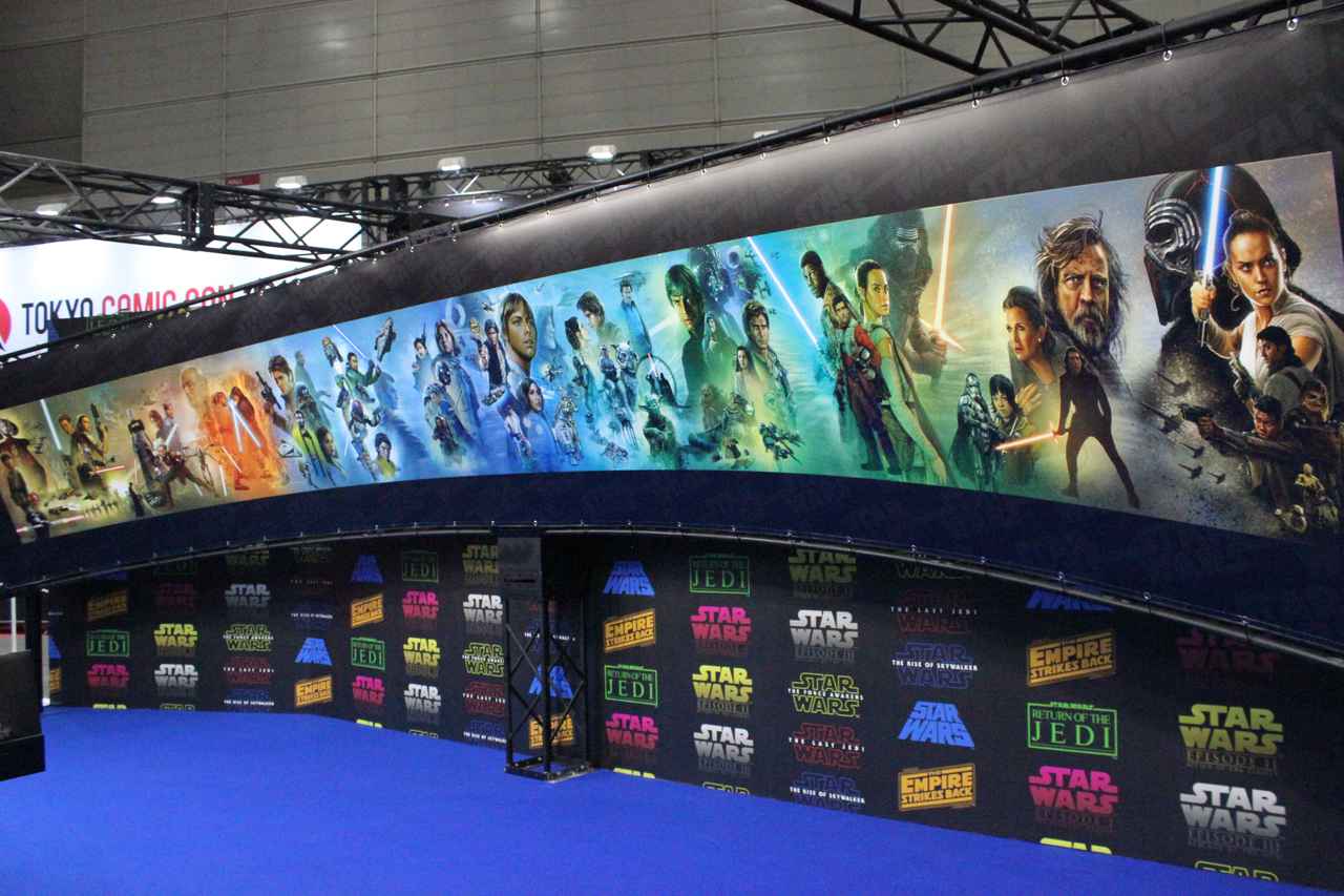 マーベル/スター・ウォーズのブースでは、歴代『スター・ウォーズ』クロニクルを振り返ることができるイラストが並ぶ壮観。また、MCUのポスターも一覧で表示されているので、その歴史の重みを感じることもできる。