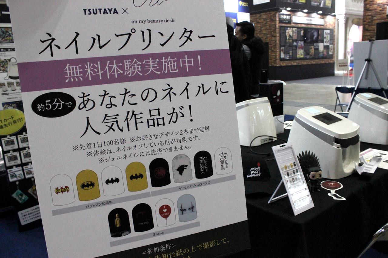 TSUTAYAプレミアムのブースでは『バットマン』や『ゲーム・オブ・スローンズ』、『IT』のネイルアートを体験できるブースが。爪にもアメコミ要素を取り入れて、気分を上げてみては。