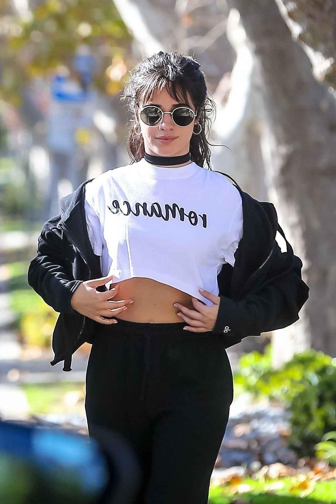 パパラッチの姿を発見し、薄っすらと笑みを浮かべるカミラ。注目すべきは、この時彼女が着ていたクロップト丈の黒のTシャツの胸元に書かれていたメッセージ。