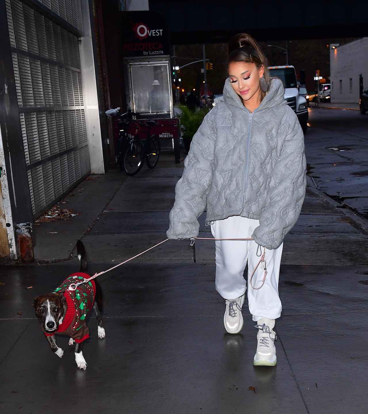 この日は愛犬マイヨンもクリスマス仕様のドッグウエアでおめかししたアリアナは、ニューヨークの街中で散歩をしながら、途中スターバックスへコーヒーへ。多忙なスケジュールの合間に犬の散歩をするのが、リラックスできる時間だと話していた。(フロントロウ編集部)