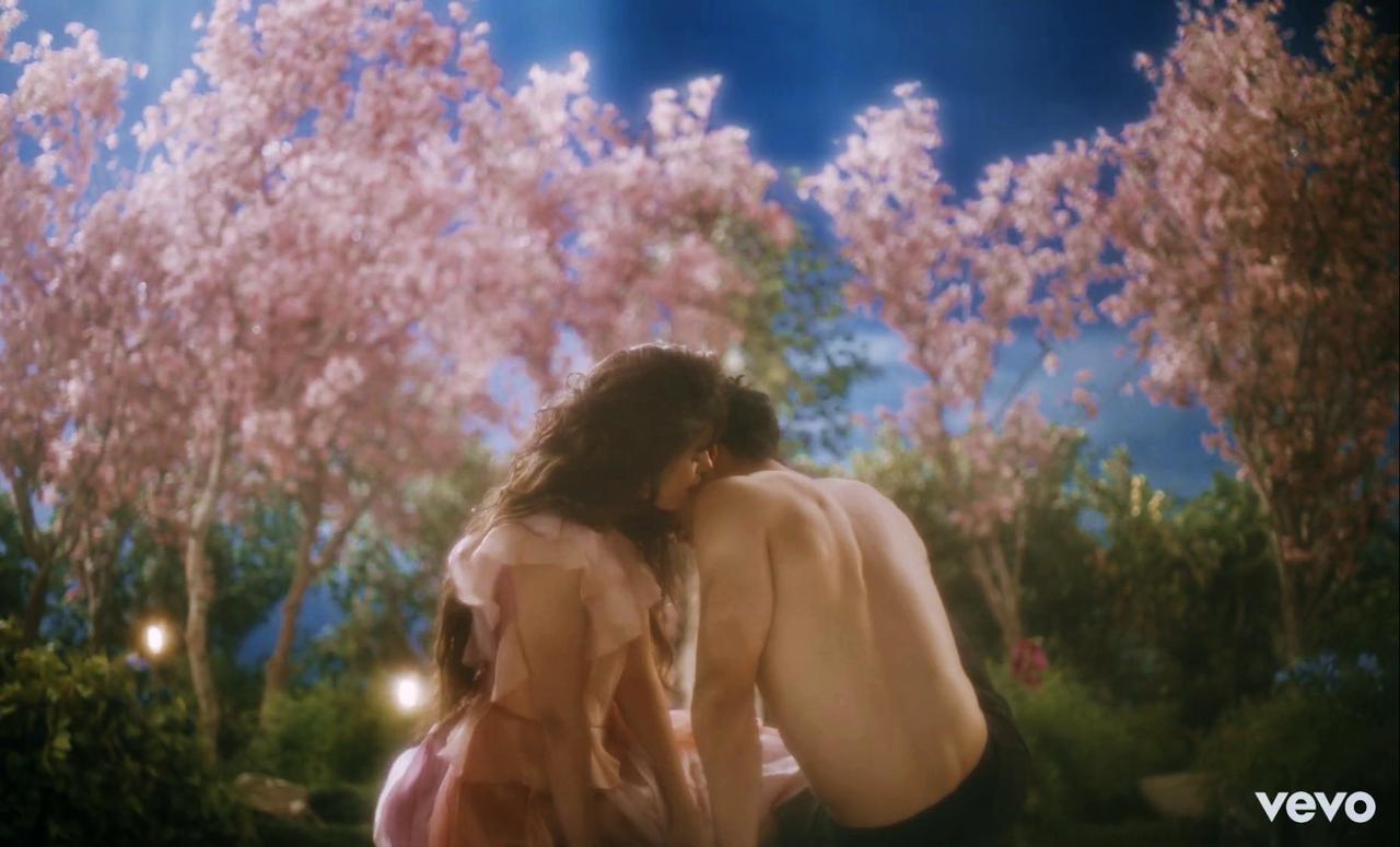 今回のMVの最大の見どころはなんといっても、古代ギリシャ神話に登場する精霊(ニンフ)に扮したカミラと、“彼女に恋をしている”という役どころの男性ダンサーが繰り広げる濃厚な絡み。上半身裸の男性ダンサーとキス寸前の距離まで顔を近づけたり、体を密着させながらダンスを踊ったり、ドキッとするような場面が多く登場する。