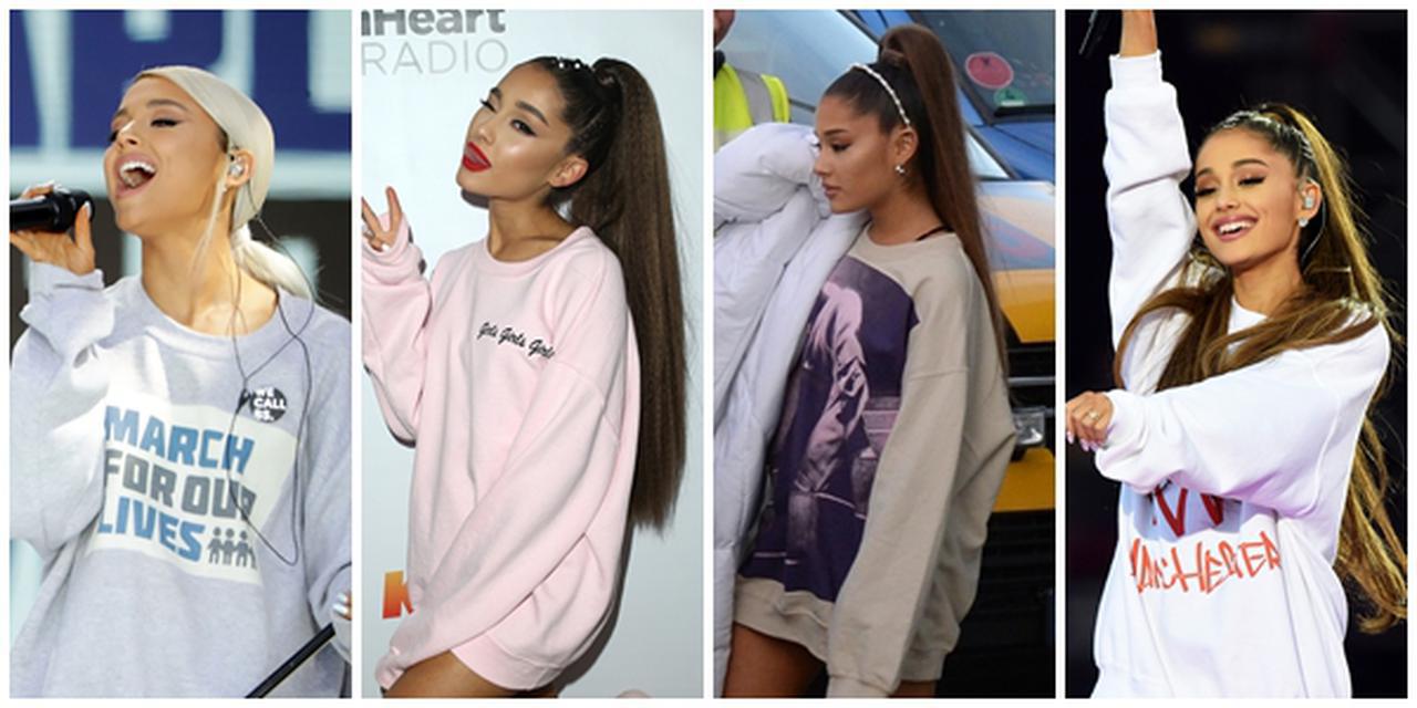シンガーのアリアナ・グランデが得意とする着こなしといえば、高い位置に作ったポニーテールとオーバーサイズのトップスにニーハイブーツのスタイル。コンサートでは、多くのファンがそのファッションを真似するなど、アリアナのトレードマークとして知られている。