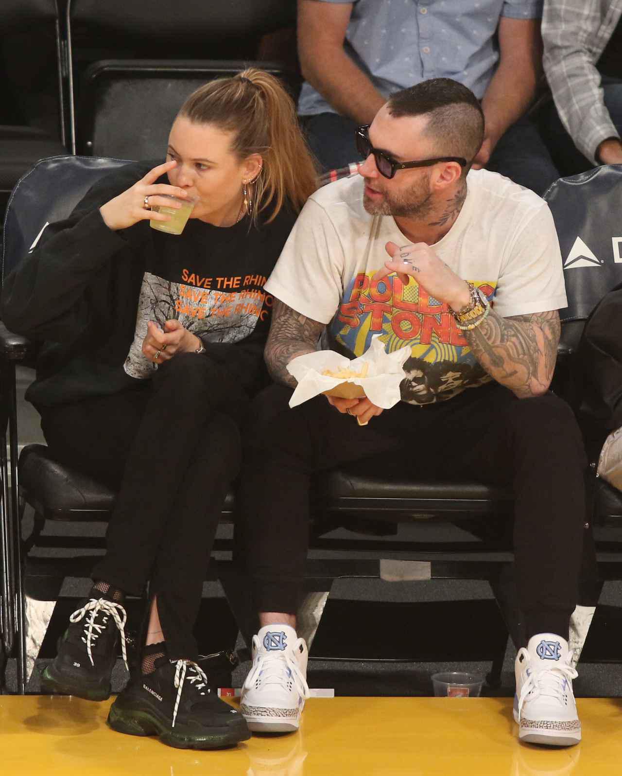 モデルのベハティ・プリンスルーと夫でバンドMaroon 5のボーカルであるアダム・ラヴィーンが、夫婦揃って試合観戦へ。(フロントロウ編集部)