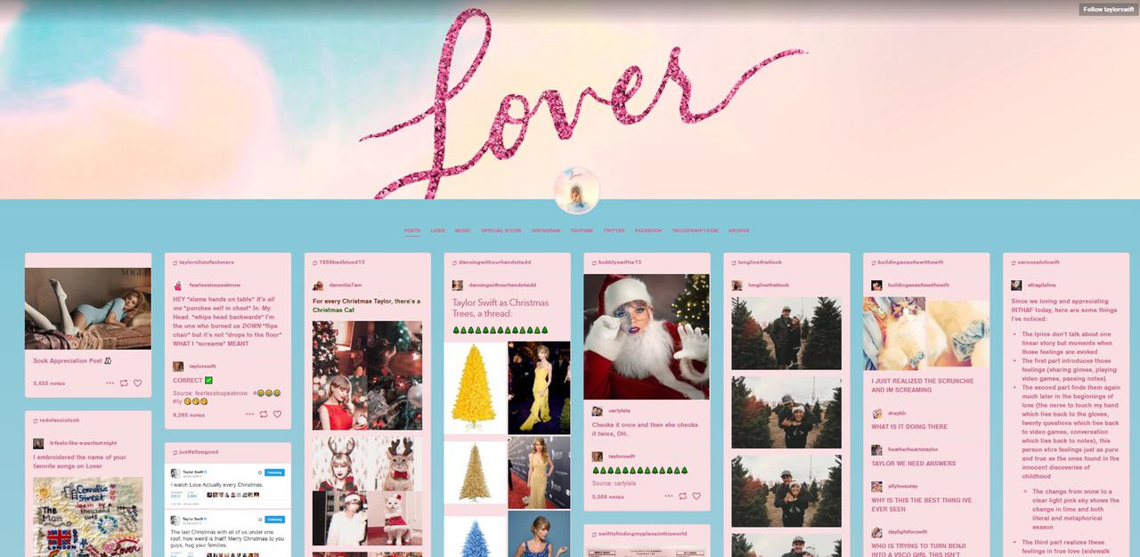 テイラーのTumblrページのトップ画面。©Taylor Swift/ Tumblr
