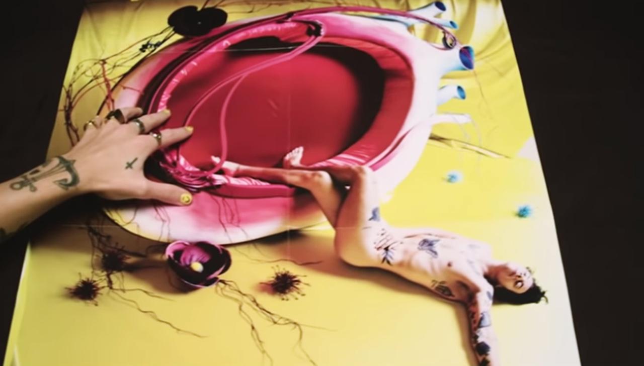 シンガーのハリー・スタイルズが、12月13日(金)にリリース予定のニューアルバム『ファイン・ライン(Fine Line)』のレコード盤のアートワークをひと足先に公開。YouTubeの公式チャンネルにアップされた動画には、ハリーが自分の手でアルバムのカバー写真や中身を紹介する様子が収められていたのだが、この時、映り込んだ“あるもの”がファンを発狂させている。