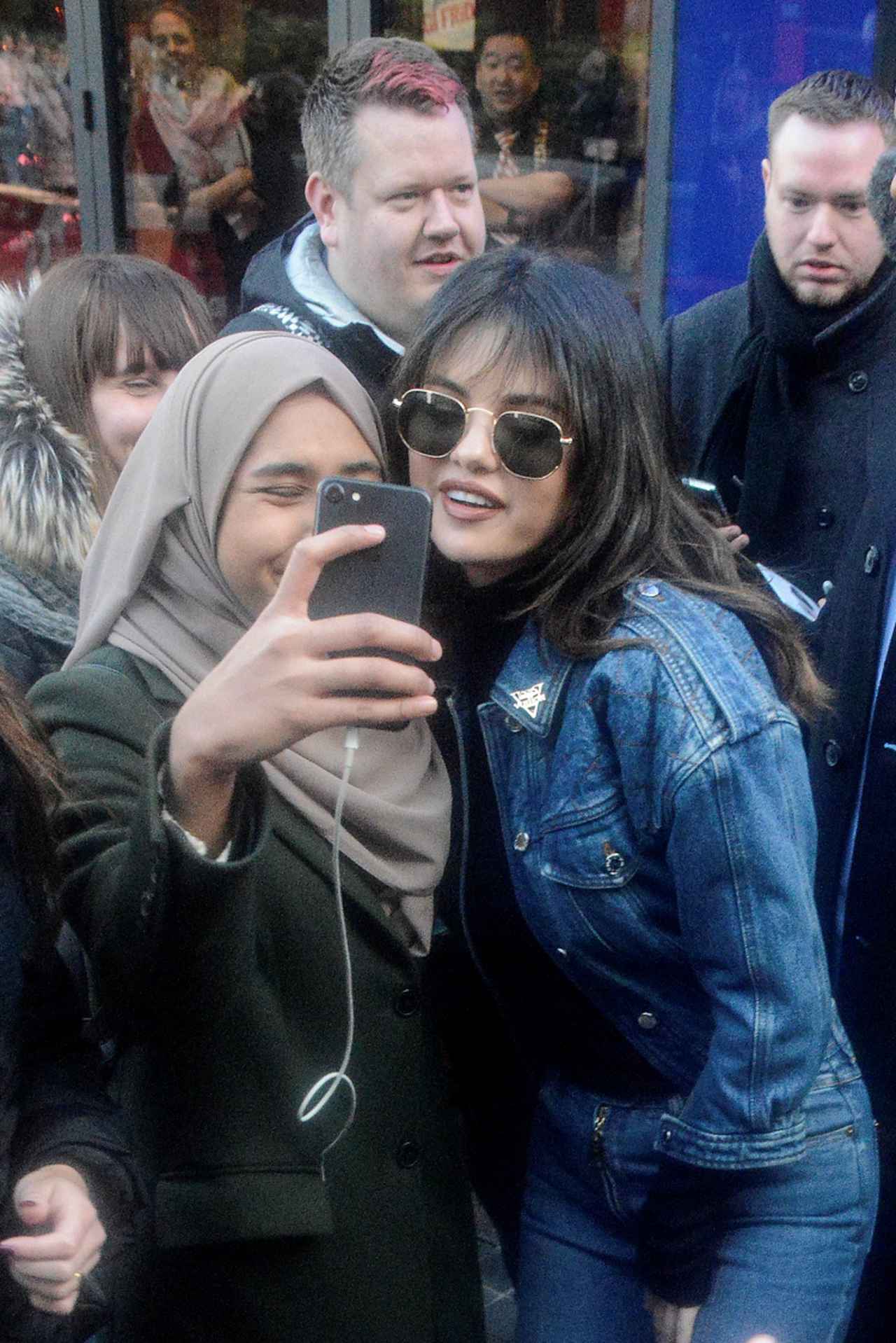 ロンドンのラジオ局をはしごし、ファンたちに囲まれるセレーナ。