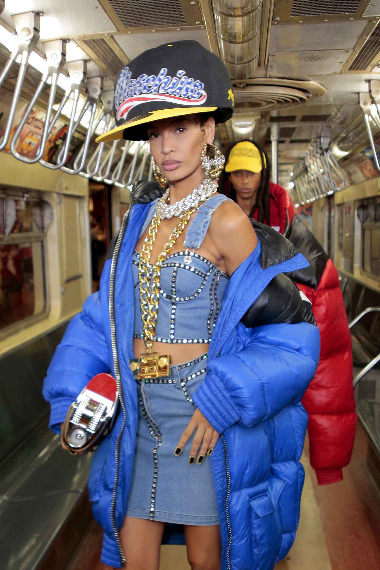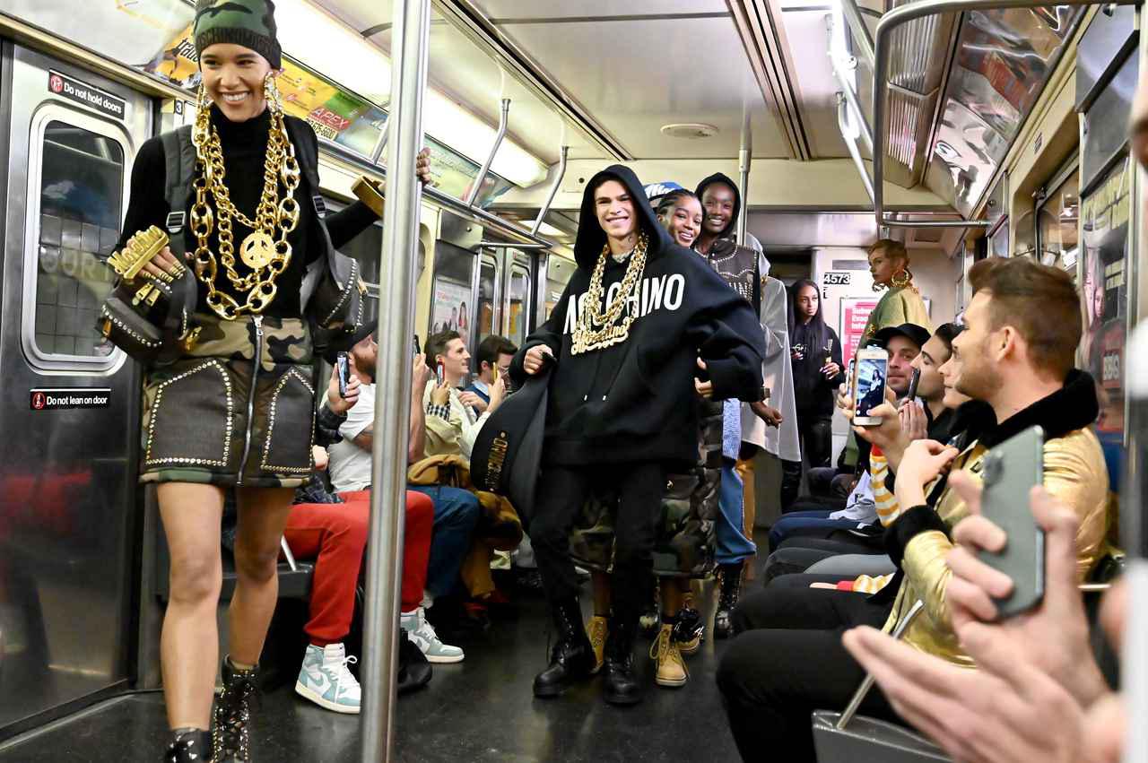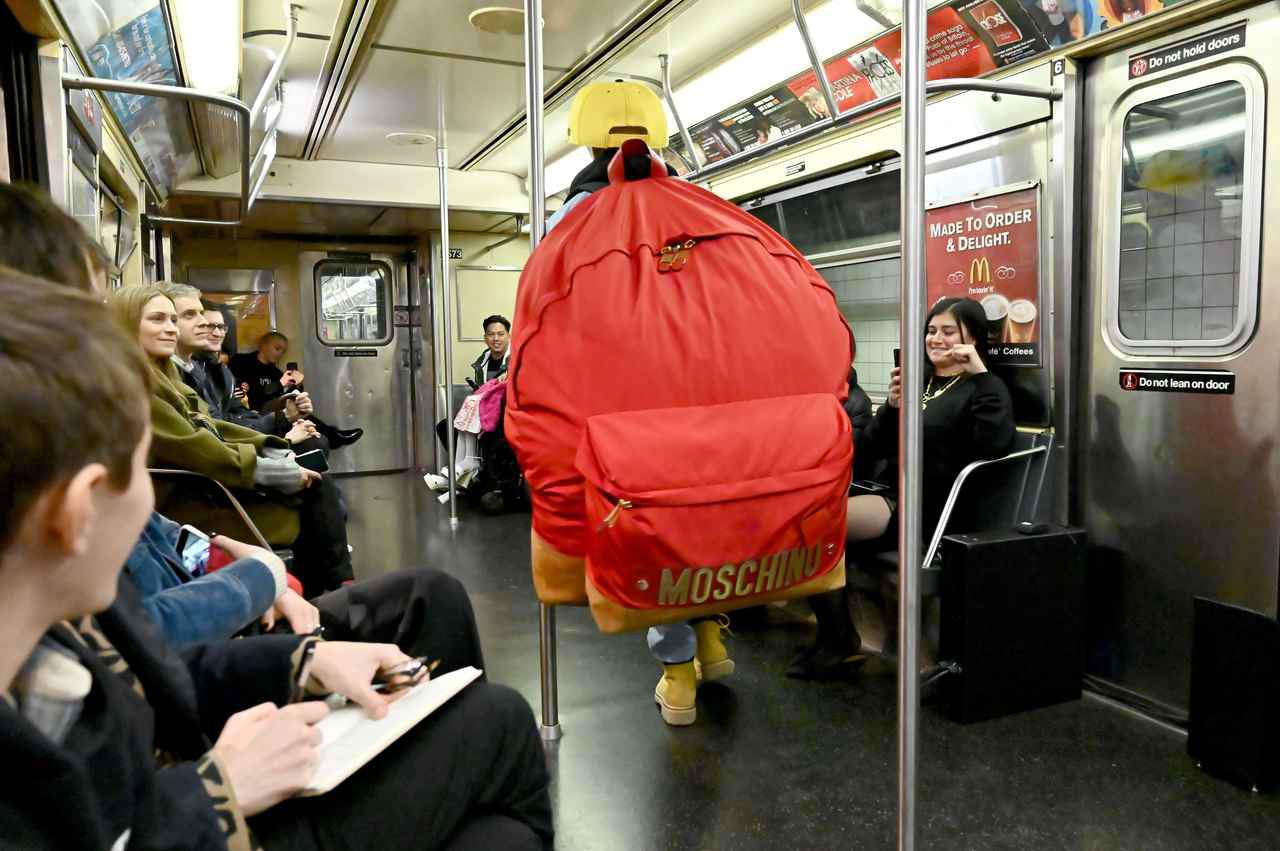今回モスキーノのコレクション会場となったのは、ニューヨーク交通博物館。ゲストたちは電車の椅子に座り、その間がランウェイとなりモデルたちがウォーキングするという、画期的なアイディアはジェレミーならでは。