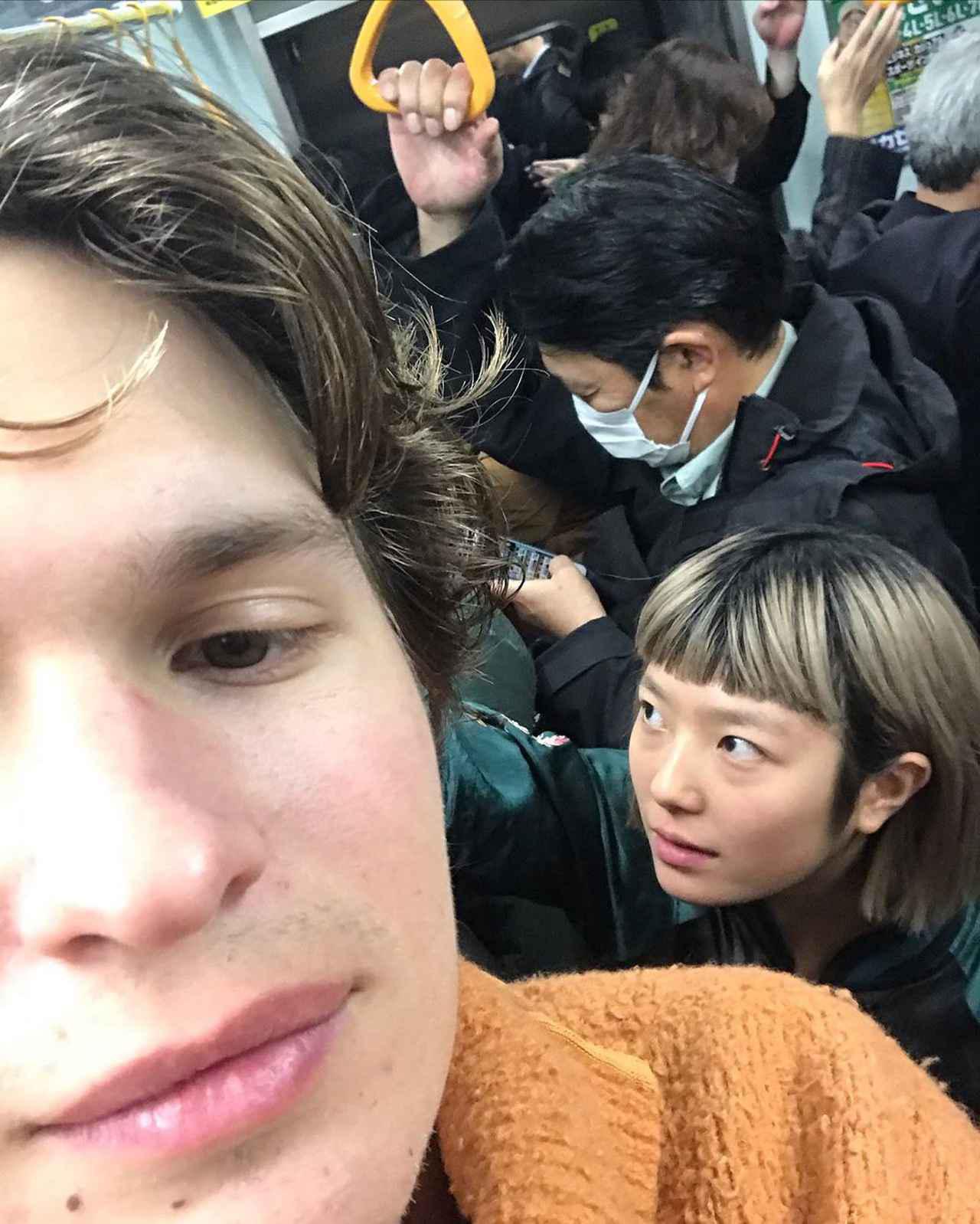 それは、満員電車で大勢の人にももみくちゃにされている写真。アンセルはぎゅうぎゅうに人が詰め込まれた電車に乗り、その様子を伝えたかったのかセルフィー。まさか電車の中にハリウッドで活躍する俳優がいると思うはずもなく、誰もアンセルのことに気づかなかった様子。