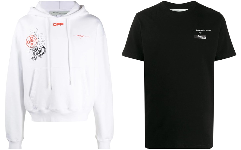 コレクションでは、Tシャツとパーカが登場。オフホワイトを象徴する、ロゴの配置やダイヤモンドの矢印を含む典型的なマーキングが、世界の先駆的なアーティストの1人の石造りの絵画と共に絡み合う。