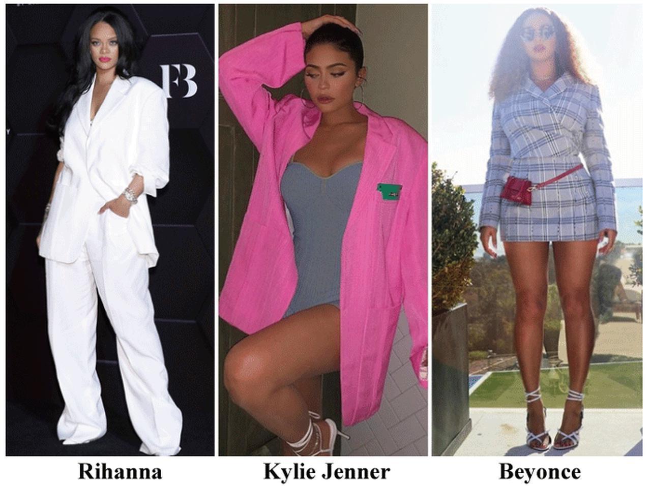 ジャックムスのジャケット&パンツを愛用するシンガーのリアーナ、ジャケット&インナーを愛用するトップセレブのカイリー・ジェンナー、バッグを愛用するトップシンガーのビヨンセ。