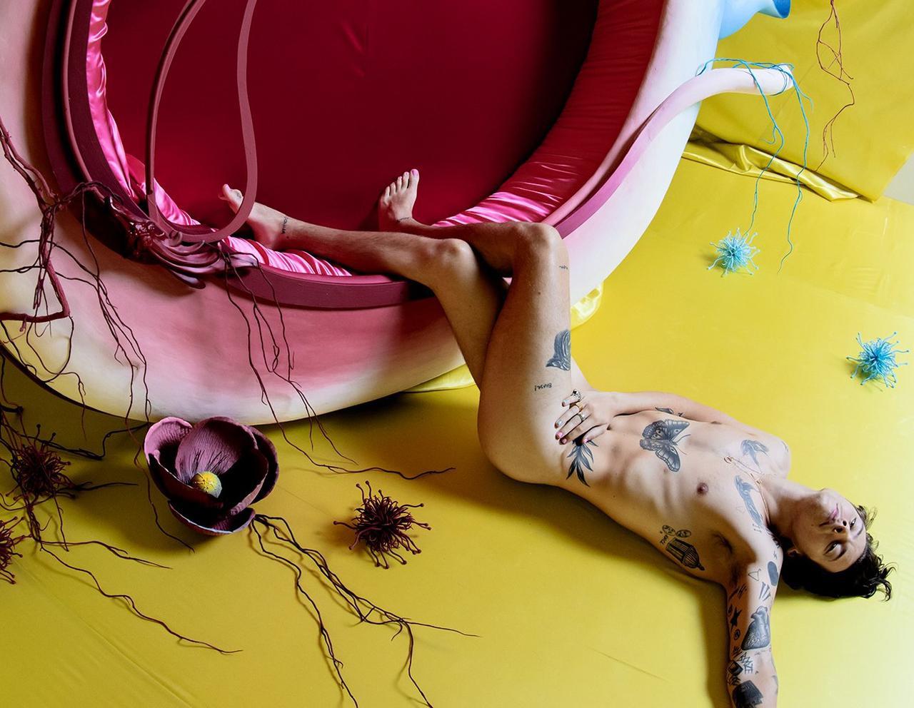 シンガーのハリー・スタイルズが、ニューアルバム『ファイン・ライン』のレコード盤に付録でついているポスターで「全裸」を披露した経緯を明かした。(フロントロウ編集部)