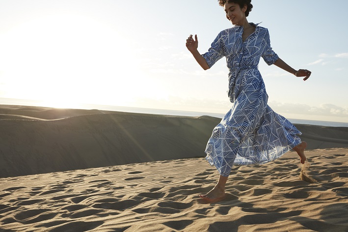 シーズンが移り変わると、サファリからインスパイアされた上質なリネンが大胆な色合いで登場。また、エフォートレスなシェイプのスイムウェアは、色鮮やかなカラーですっきりとしたラインが入ったスポーティーなスタイルや、紙吹雪をちりばめたような可憐なコンフェッティ・プリントなデザインが登場する。