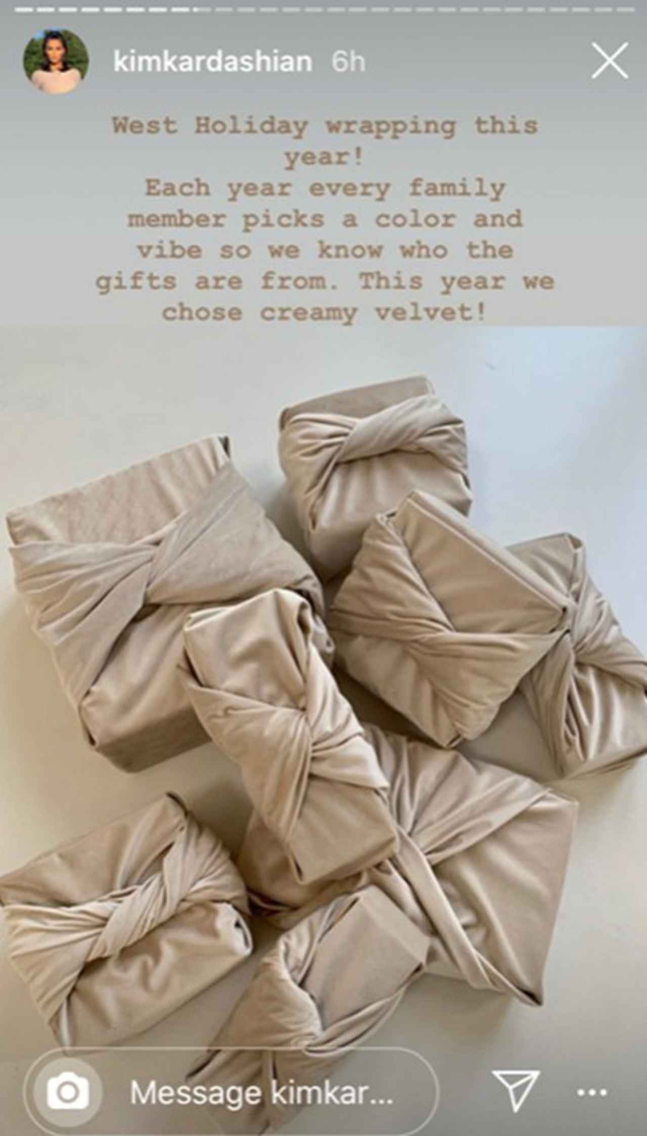 そんなキムが、カーダシアン家のメンバーたちと交換し合うプレゼントのギフトラッピングをインスタグラムストーリーを通じて公開。