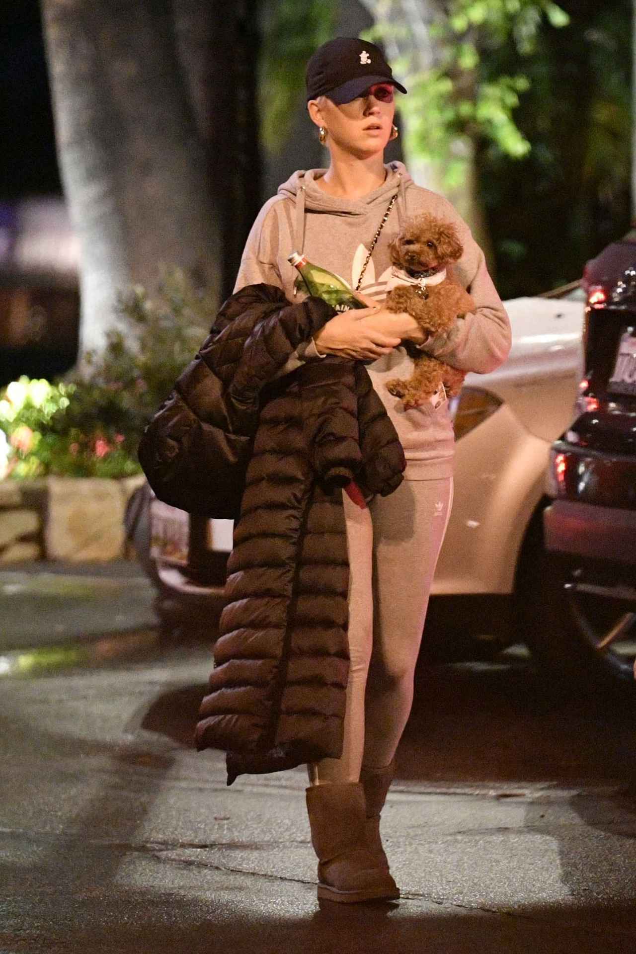 Adidas(アディダス)のジャージのリラックスコーデに、アグのクラシックブーツを合わせた人気シンガーのケイティ・ペリー。ケイティは最も人気のブラウンカラーを愛用して。