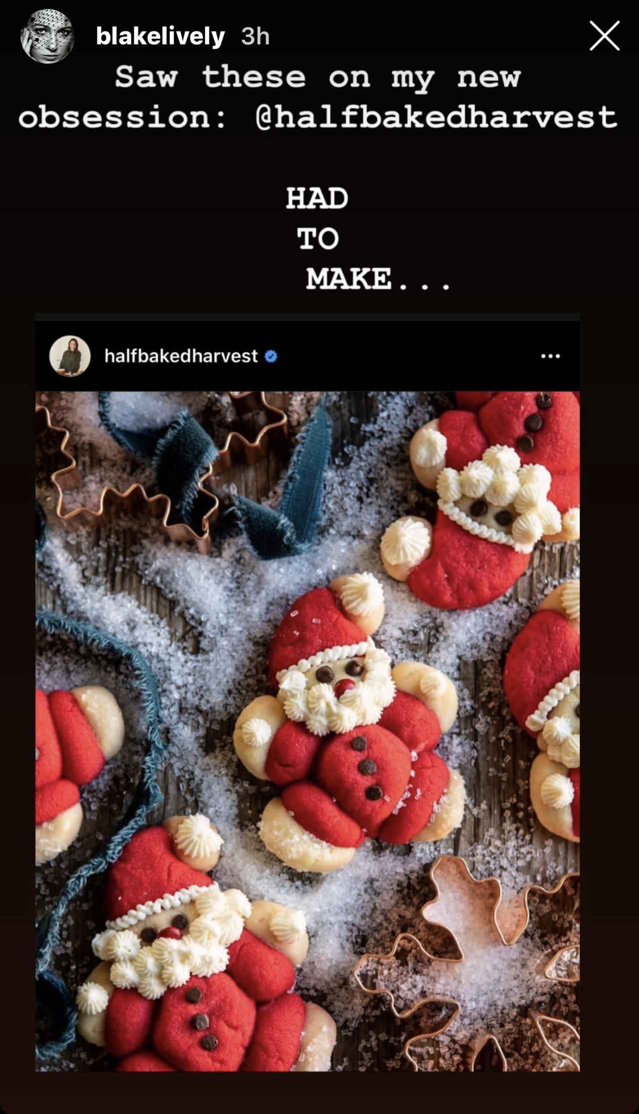 ブレイクは、クリスマスにキャンディケーンとクリスマスツリーとクッキーマンのクッキーを作ったことを自身のインスタグラム・ストーリーズで公開。