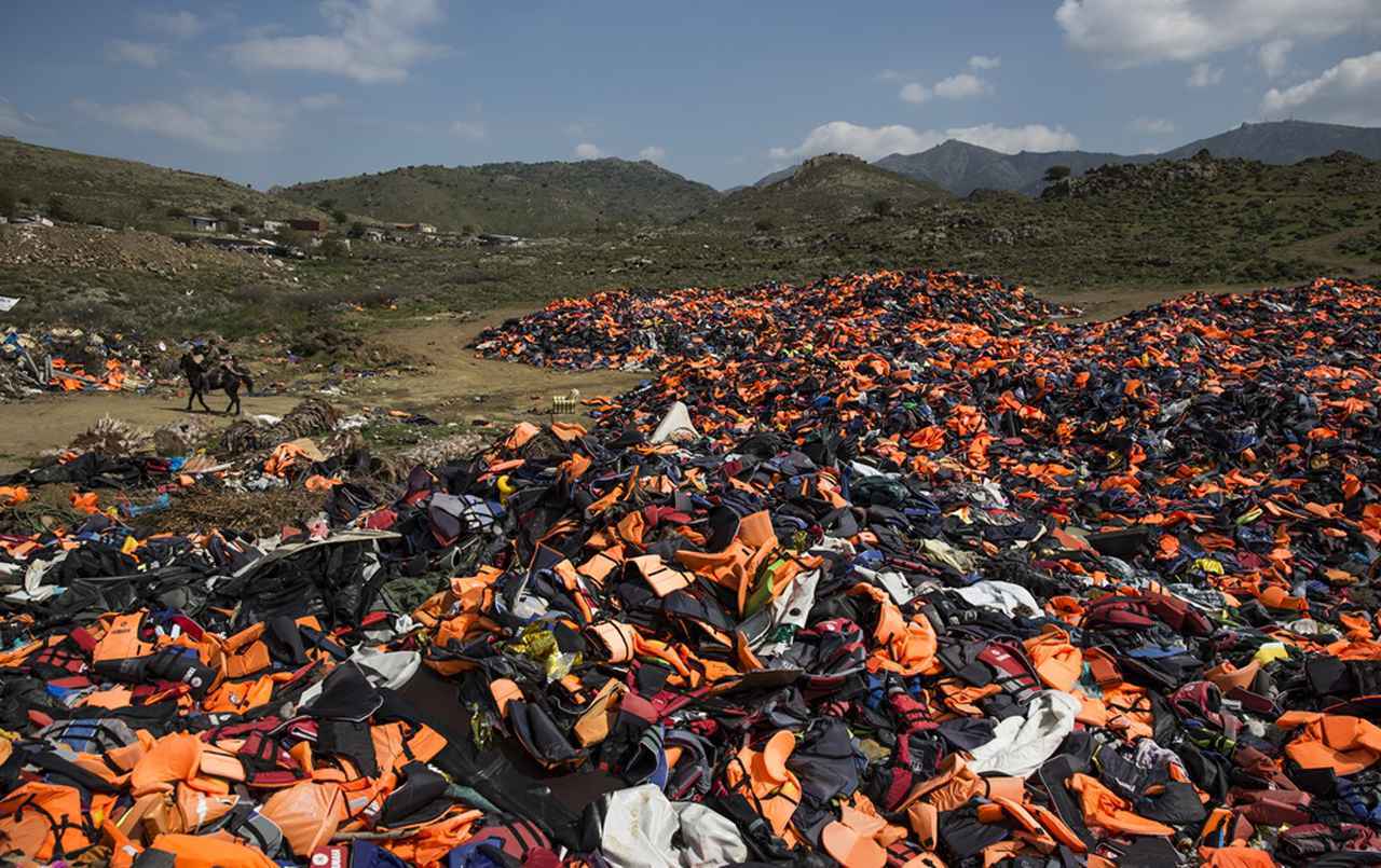 国連難民高等弁務官事務所(UNHCR)が発表した報告書によると、2018年の難民の数は世界で2590万人に達し、2017年より50万人増加。難民の多くは船を使ってやってヨーロッパなどにやって来るため、ライフベストを着用している場合が多く、その時着用していたライフベストは海岸で脱ぎ捨てられ、海岸に残された救命胴衣の処分についても問題になっていた。